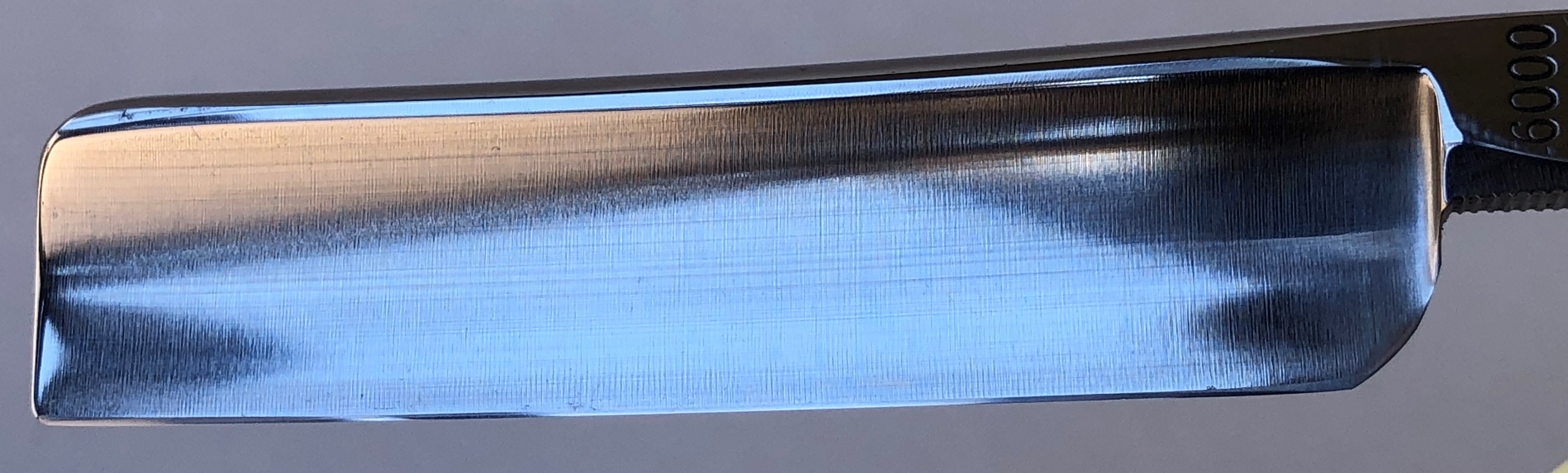 Кромочка равномерна по всей длине. В бритье бритва мне не подошла, так что пытайтесь заточить самостоятельно.