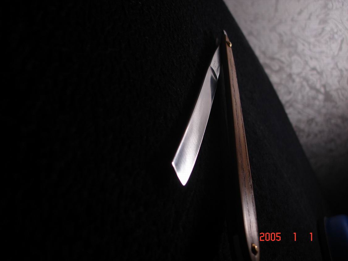 Скорее всего бритва в пользовании не была ,заводская шлифовка , бритва была разобрана , отполирована , ручка восстановлена , дополнил конструкцию шайбочками на осевом пине , что бы избежать трения ручки о полотно бритвы .