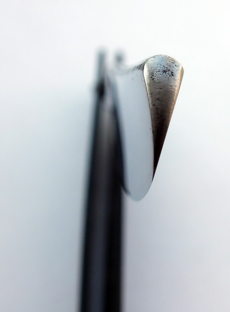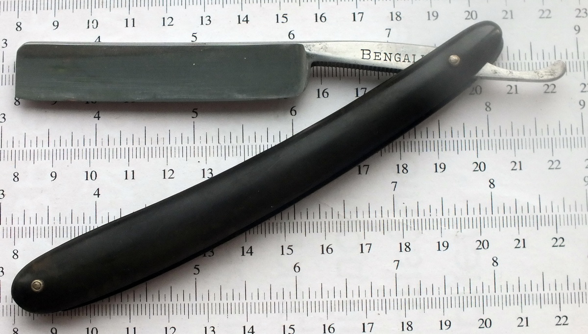 Состояние целки. Точил впервые. Кромка 0,15 мм. Есть следы времени. На обушке и полотне единичные неглубокие точки. 6/8 ложный фреймбэк. Углеродистая сталь, рог, кость. Бритва заточена и готова к бритью. Продано. Spoiler Show