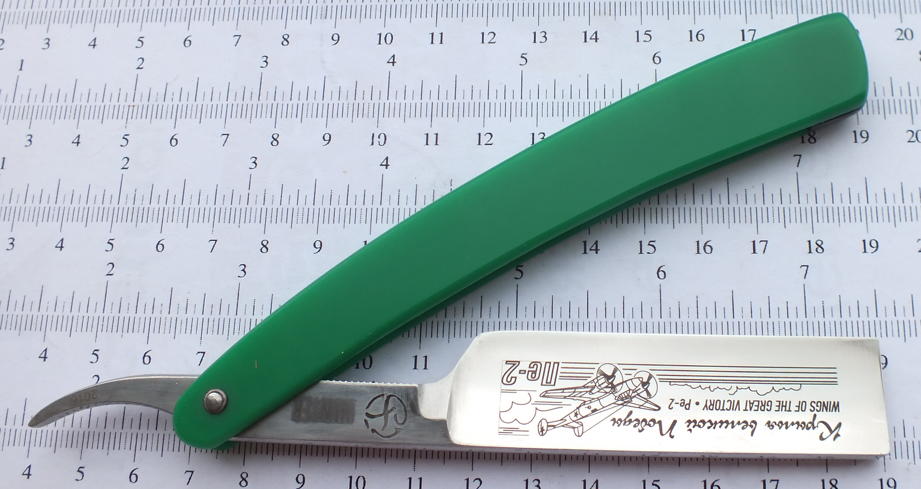 7/16 почти клин. Углеродистая сталь, целюллоид. Бритва заточена и готова к бритью. Продано на другом ресурсе. Spoiler Show