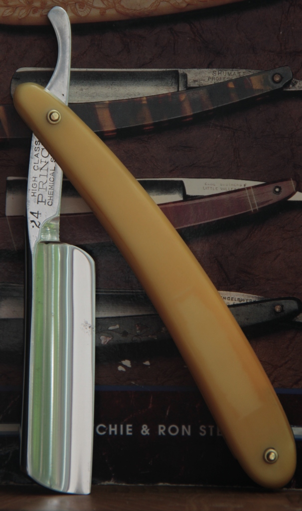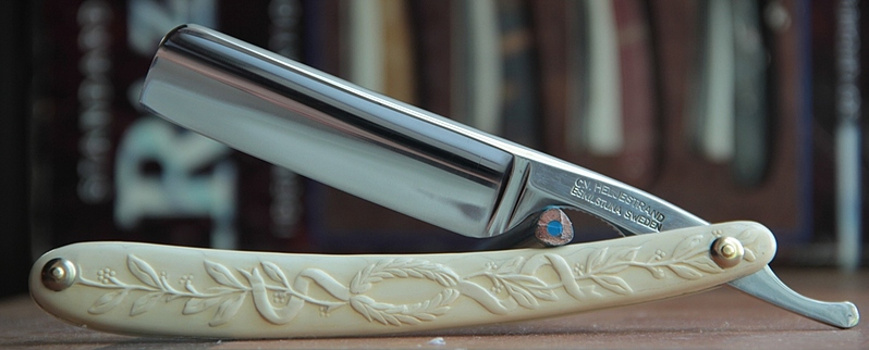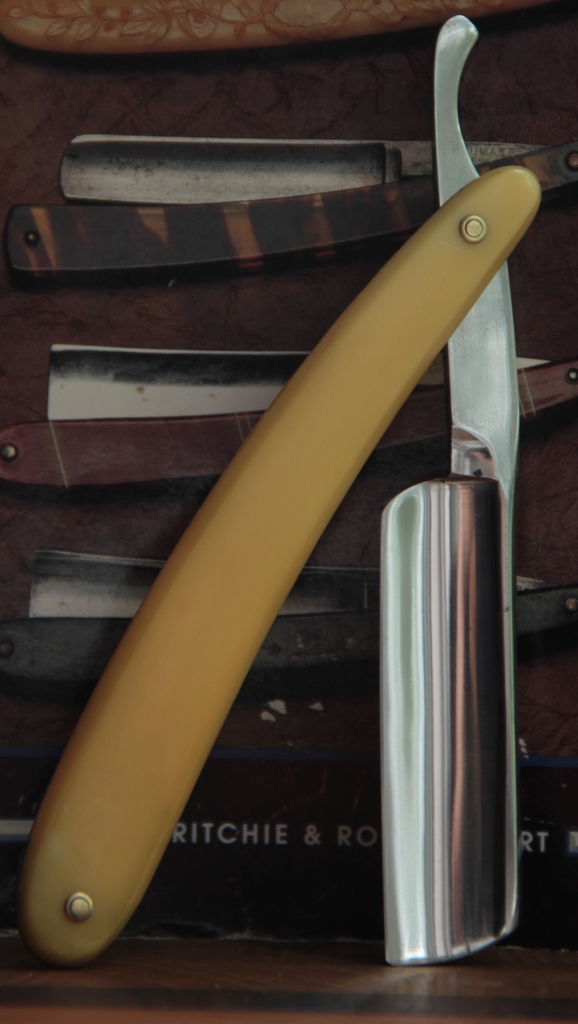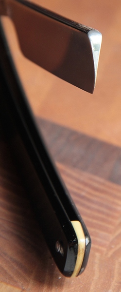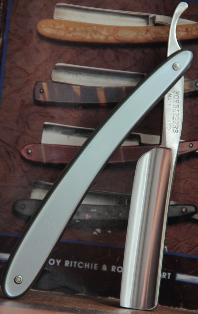 Бритва имеет толстый обушок, в связи с чем бритва несколько тяжелее своих собратьев такого размера. Из за своего веса и толстого обушка, бритва очень хорошо и легко точится без особого давления на кромку.Всё делается практически под собственным весом. Бритьё бритвой с таким полотном приближается к эталонному(ИМХО, конечно). Сталь здесь очень качественная, без каких либо проблем.Бритва совершенно непользованная.Всё оригинальное и ничего не разбиралось и не ремонтировалось. Полотно намертво впрессовано в обух. Бритва будет заточена впервые и подготовлена к бритью.