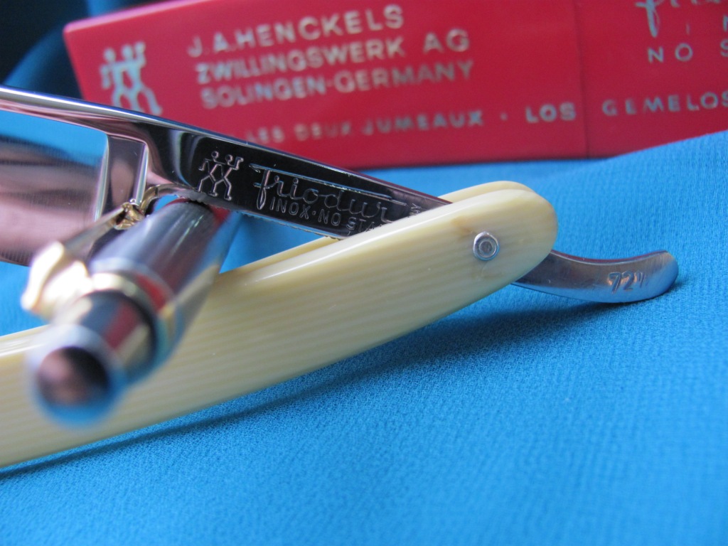 Размер полотна 15 мм, обух 4,5 мм. Ручка -пластик, родной кофр в комплекте. Бритва новая, не точеная ( заводская присутствует), продается как есть , из упаковки. Заточка в подарок по желанию покупателя, но есть возможность первой ночи у покупателя, так что точить не стал пока. Цена: Продана Jowika Show Re: Продаётся от N*X*SJ.A.Henckels , Friodur, inox no stain забираю.