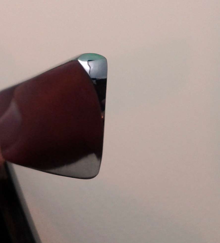 Ручка - эбонит, в отличном состоянии, легкий зеленоватый налет времени. По-видимому, ручка, пины и клинышек родные. Заточена и полностью готова к бритью. Ширина полотна 17 мм, толщина в обушке 5 мм.