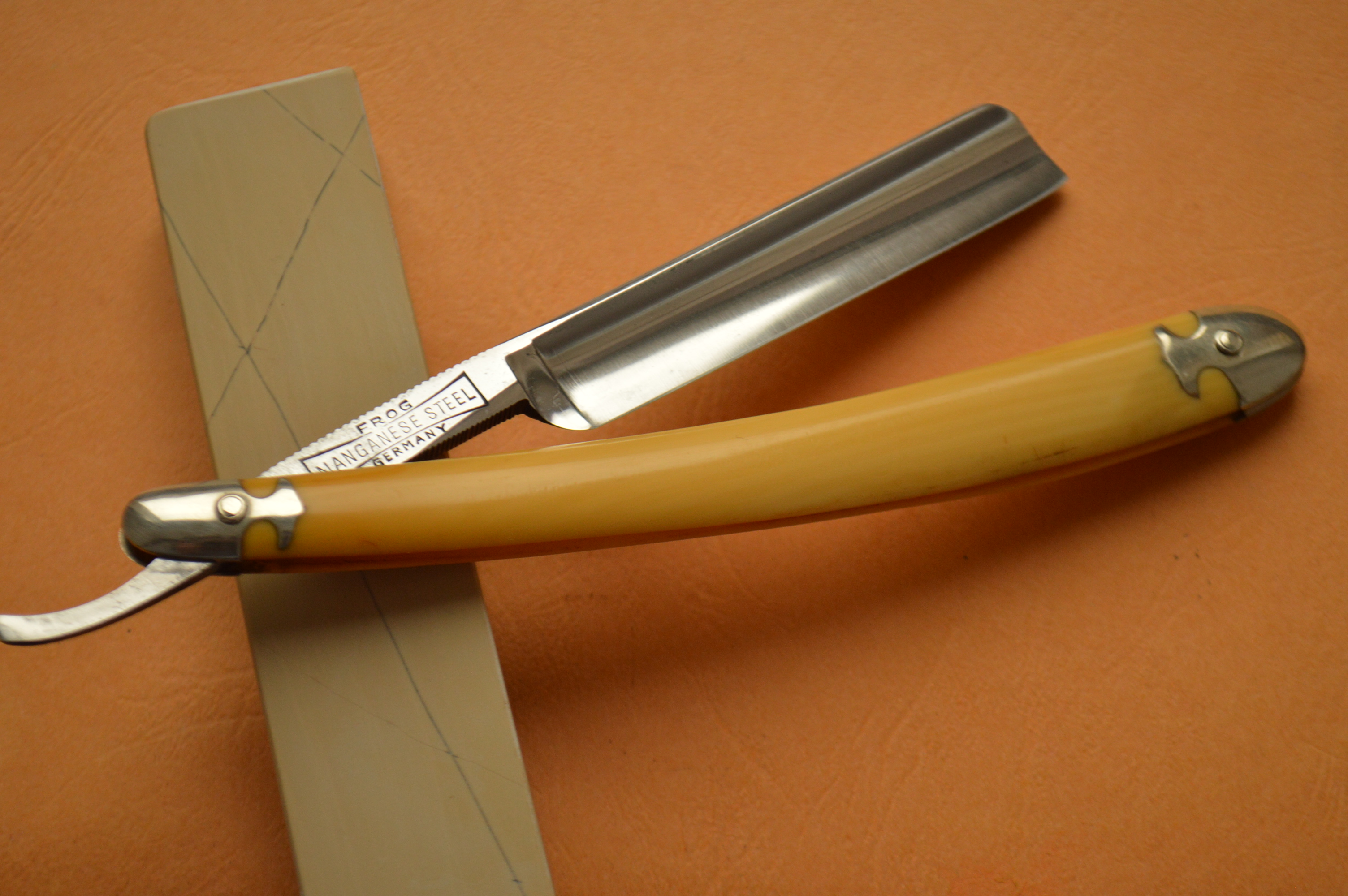 Редчайшая немецкая винтажная бритва от американского импортера Utica Knife and Razor Co. для магазина в Монреале, Канада, торговая марка FROG (лягушка), 1924-1935 годы, располагались в Нью-Йорке на 209 John Street.