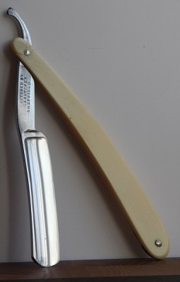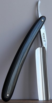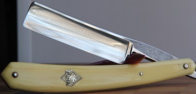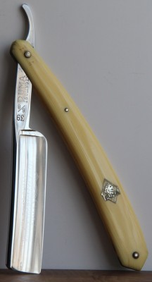 Ширина полотна-20-17 мм Толщина обушка-5.5 мм Бритва пришла в совершенно не пользованном состоянии: ничего не снималось, не ремонтировалось. всё родное. Немного освежил металл и усё.Оправа-натуральный рог, сталь-углеродка-без каких либо дефектов. Бритва заточена впервые и готова к бритью. Сталь достаточно мягкая, что придаёт комфорт и мягкость при бритье. Цена -ПРОДАНА160$ с доставкой. Spoiler Show