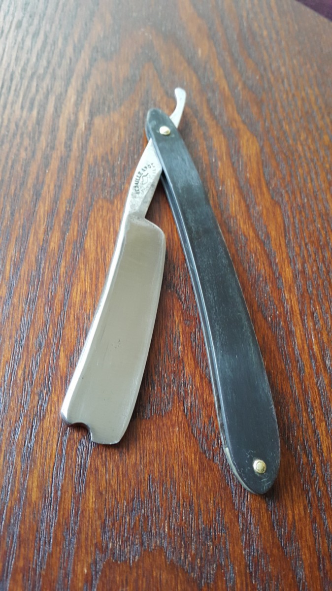 Продаётся от S&T30. Старый и заслуженный французский клин Fontenille, из XIX века. Ширина 20мм, следы ковки на эрле. Родная ручка из рога, ровная, без выгрызов. Бритва была разобрана, почищена и собрана. Установлены внутренние шайбы для плавности хода клинка. Бритва заточена без изоленты.