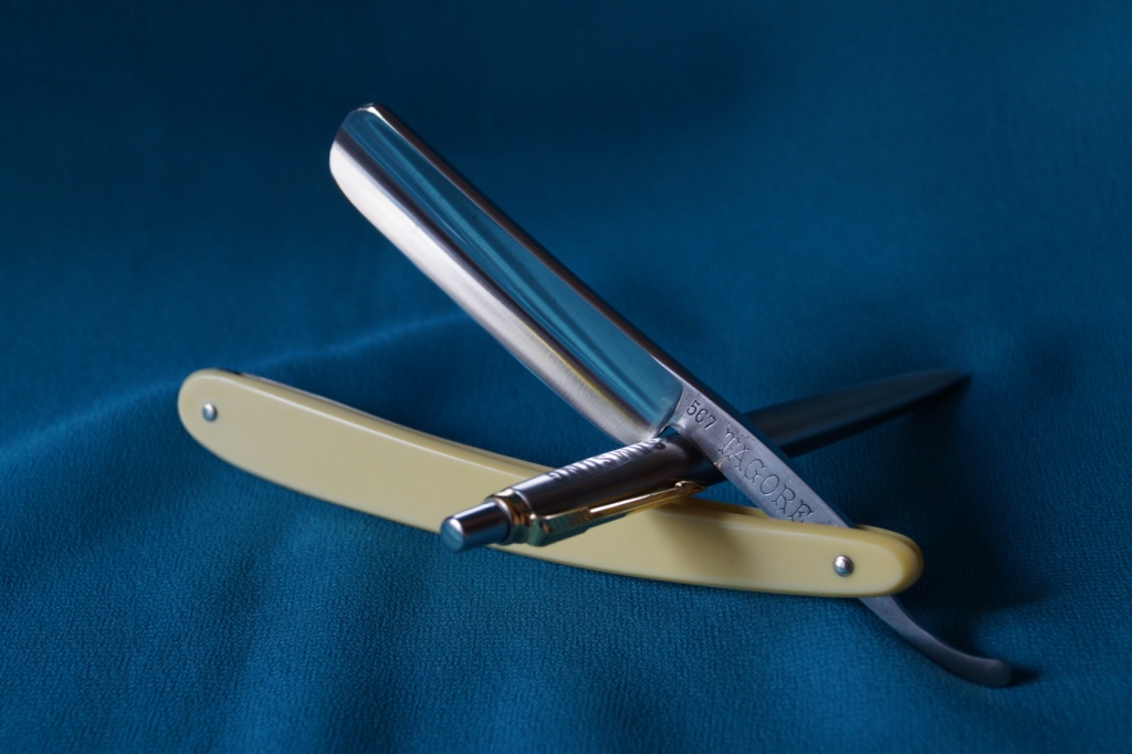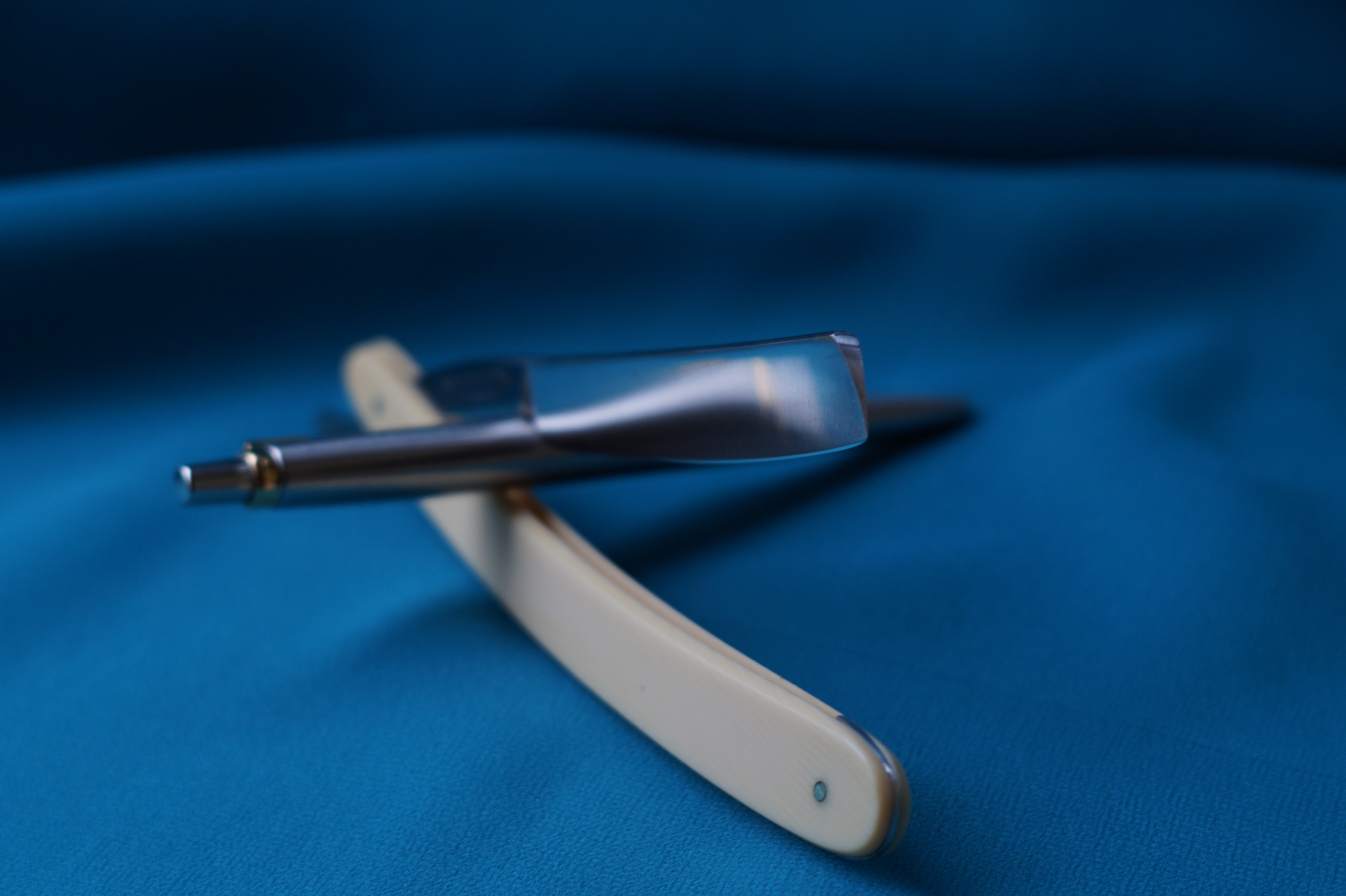 Ручка из кости КРС, состояние очень приятное, заточена и готова к бритью. На полотне, возле обушка, есть пару следов времени ( микро каверночки ), будем считать что это родинки, убирать не стал, геометрия бритвы- превыше всего. Размеры: ширина 14 мм, обух 3,8 мм . Цена: продан Daniel Peres Show