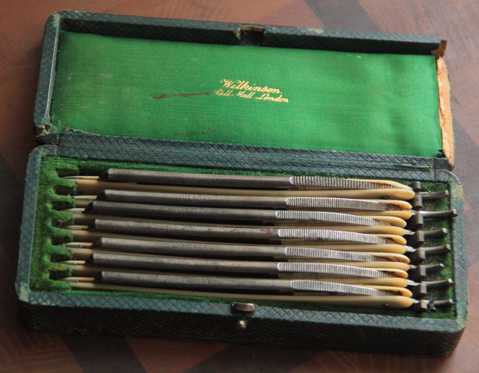 Бритвы Wilkinson Бритвы английские, старинные,предположительно рубеж 19-20-х веков. Все 7 полотен целые. Сколов или ржи на кромках нет. Все чистится и приводится в должное состояние.3 ручки целые,остальные с трещинами. Ручка из натурального бивня слона. Ширина полотен-15-16.5 мм Толщина обушка-4.5 ммПРОДАН Углерода. Родная коробочка в комплекте. Норм Состояние. Цена за все-12000 р с доставкой. Spoiler Show Всё будет ХОРОШО...тел:+79065827134
