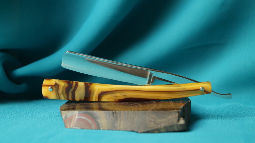 Состояние близкое к идеальному, в использовании не была, точилась мною впервые. Ширина полотна 15 мм, ручка целлулоид. Бритва заточена и готова к бритью, прекрасно подойдет начинающему , т.к. легенькая и маневренная. Продано Omega Show