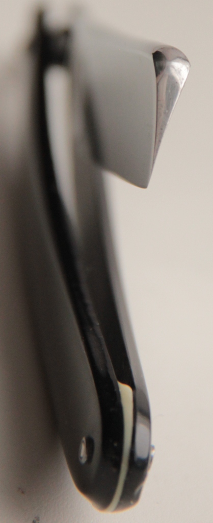 Бритва в прекрасном состоянии и в пользовании не была.За много лет хранения появилось окисление на металле, которое быстро убрал путем чистки полиролью.Также, разобрал бритву и поставил нормальные пины, с внутренними шайбами и втулками.Сталь и кромка чистые, без каких либо дефектов. Идеальная геометрия.Настоящая японская евро-классика.Заточена и готова к бритью.