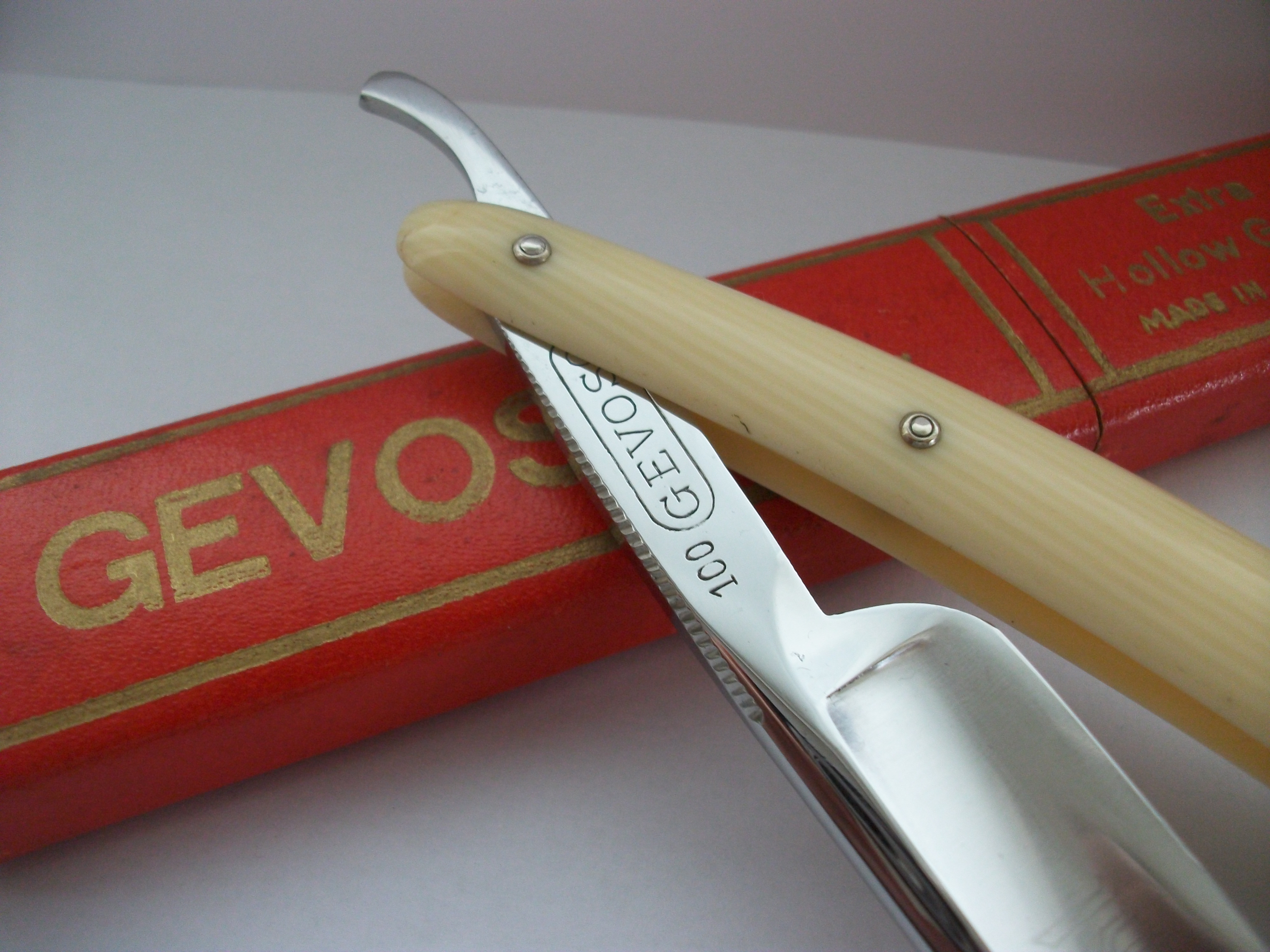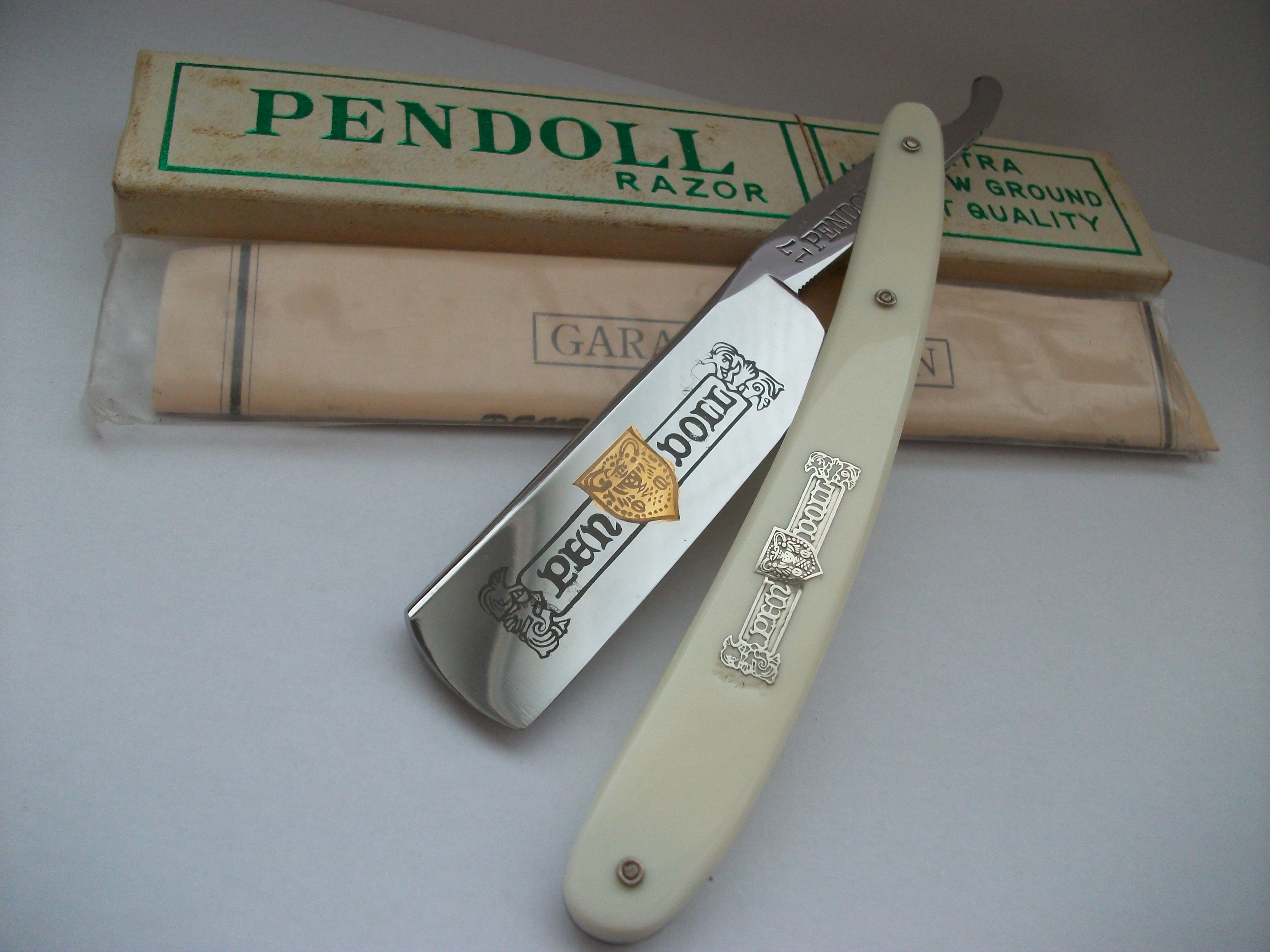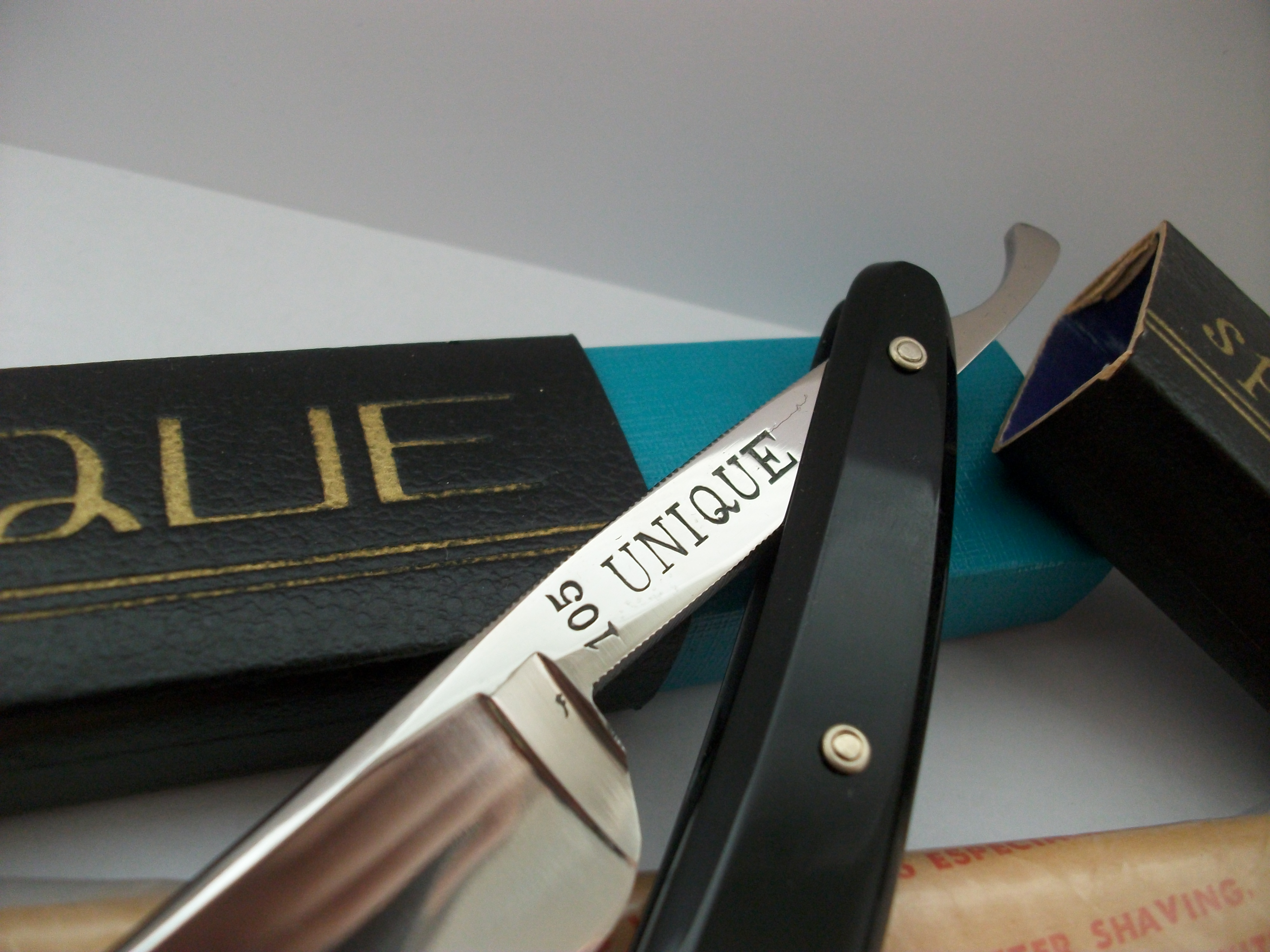Экземпляр сочетающий такие несовместимые определения как Китай, качество, винтаж... Бритва имеет хорошую геометрию, углеродистая сталь, ширина полотна почти 21мм, длина режущей кромки 68мм, ручка пластик. Примерно 50-70 года ИМХО. Заточена и готова к бритью. Продано Spoiler Show