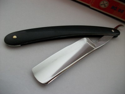Еще один винтажный китаец. Углеродистая сталь, ширина полотна 20мм, длина режущей кромки 70мм, ручка из пластика. Заточена и готова к бритью. Продано Spoiler Show