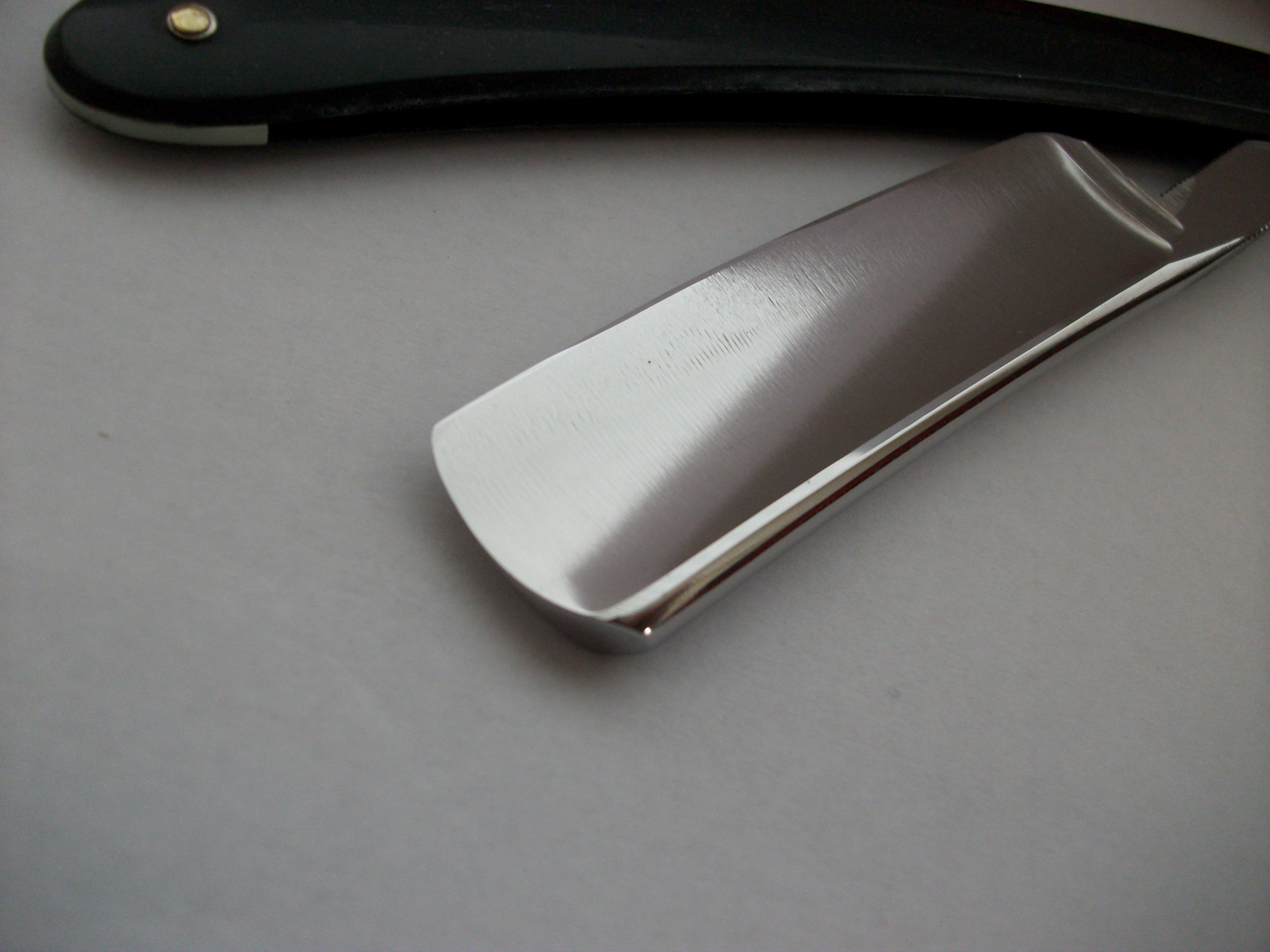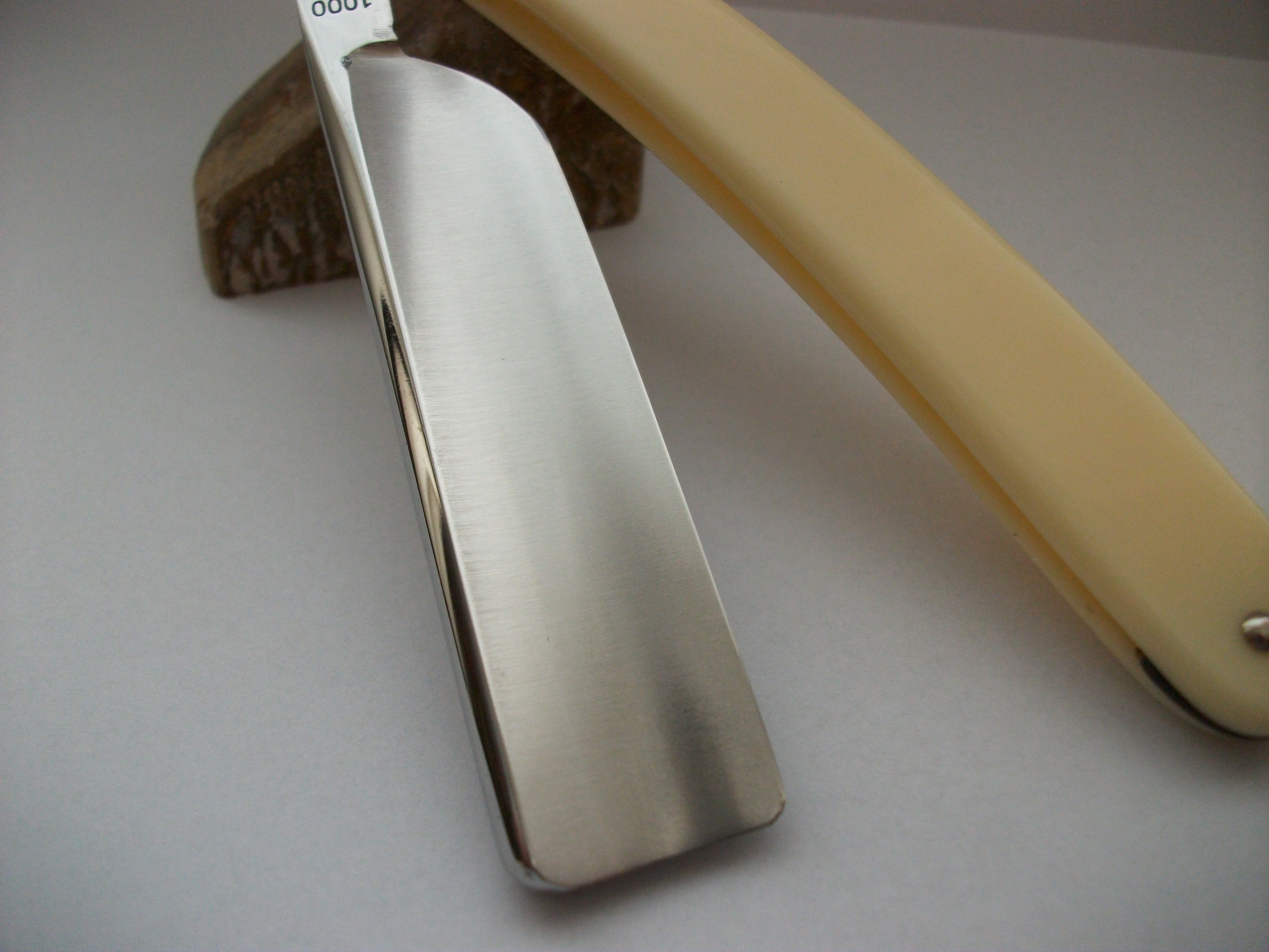 Бритва с длительного хранения (незначительные следы остались) и по моему мнению не была в использовании. Немного освежил и заточил. углеродистая сталь, ширина полотна 16мм, длина режущей кромки примерно 70 мм. В комплекте родной бокс.
