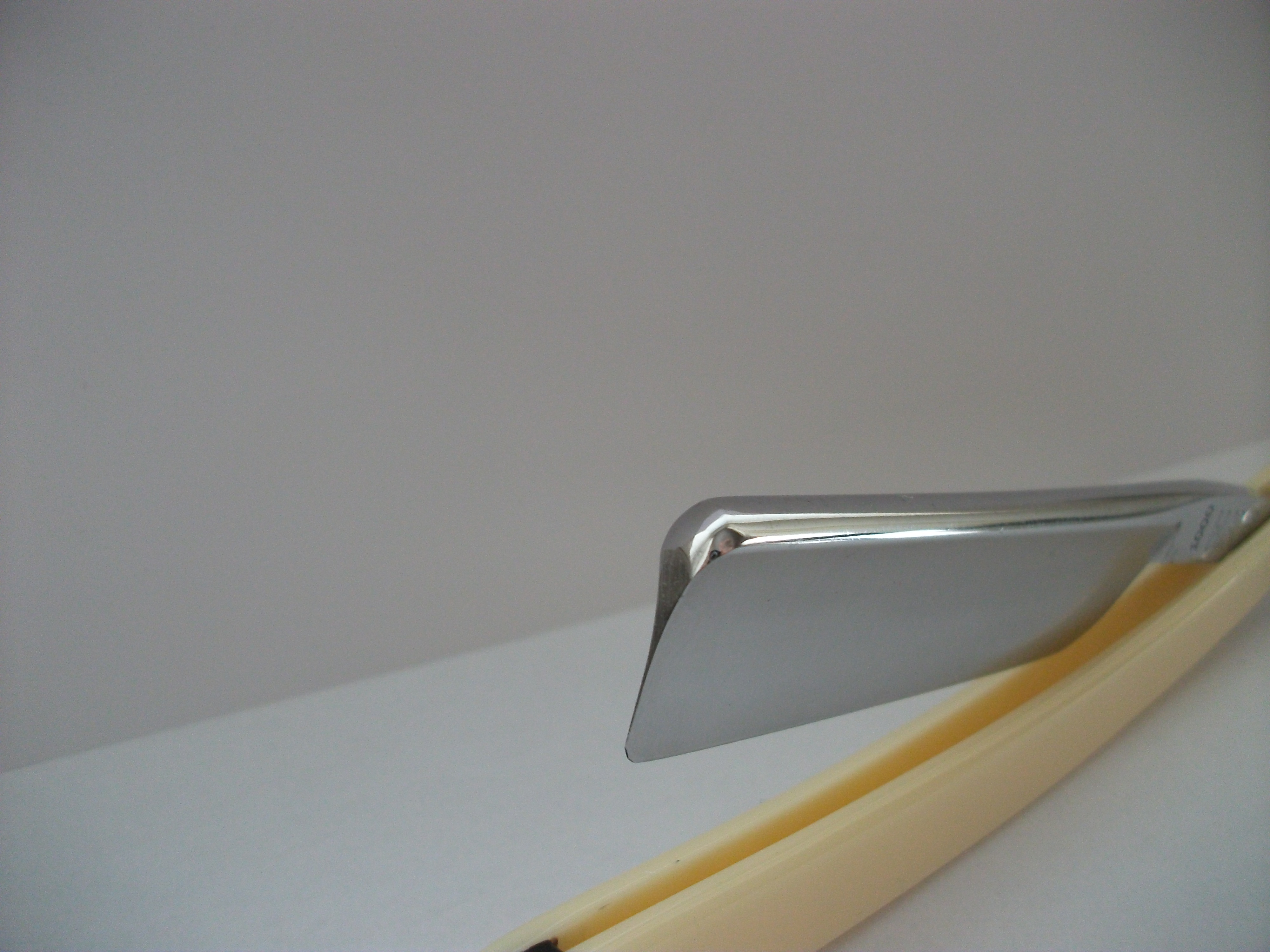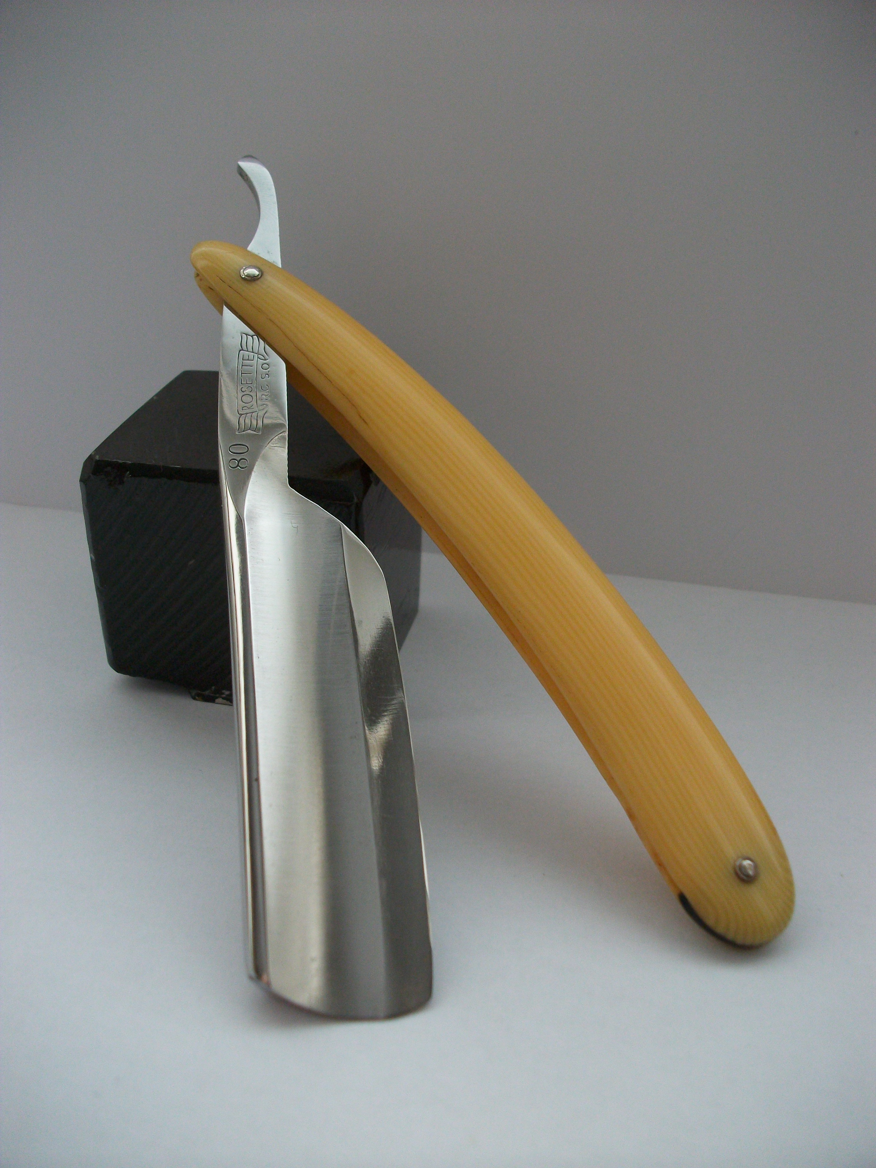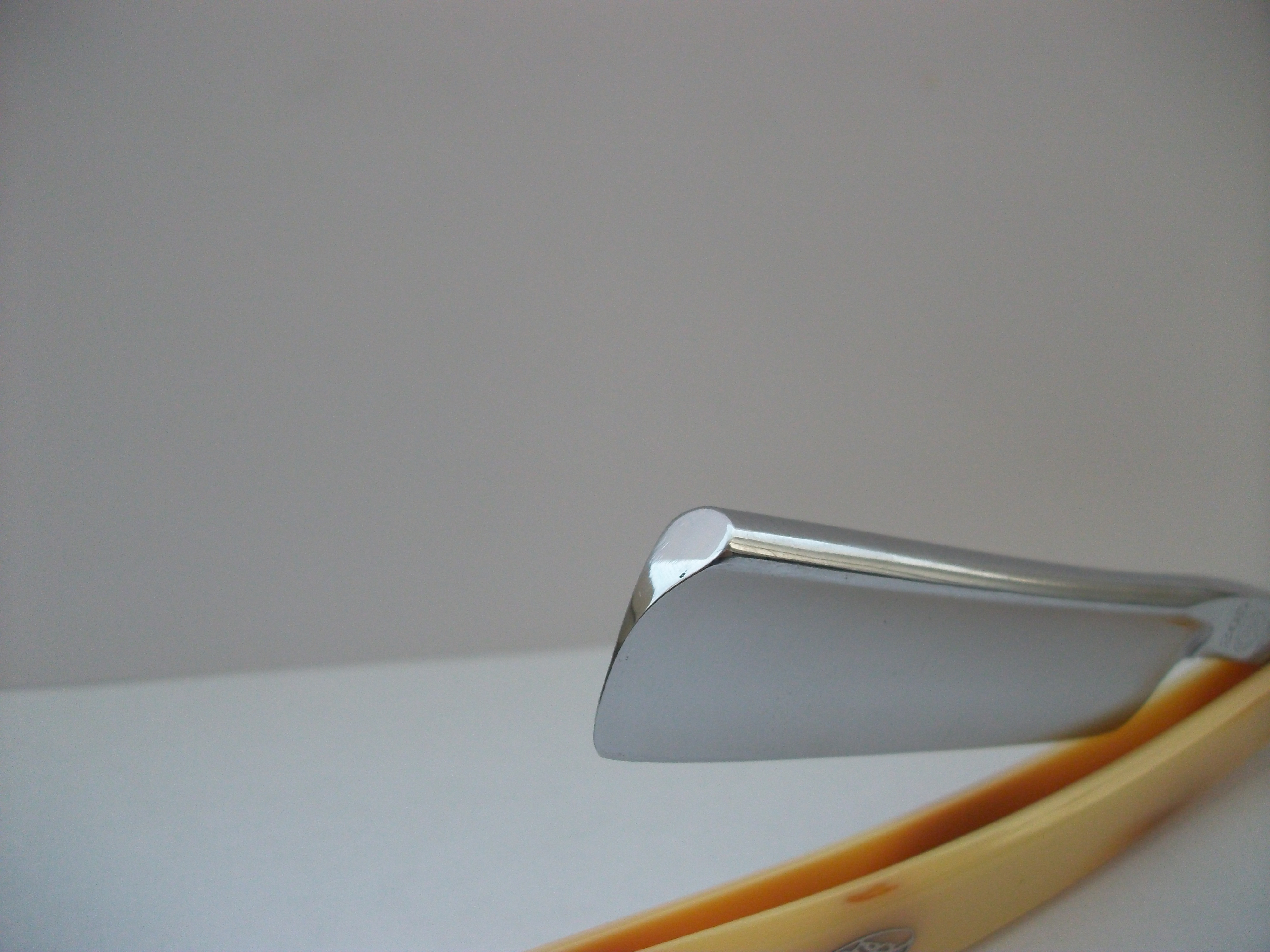 Достаточно редкий Японец Rosette с редким гриндом Belled Hollow и достаточно короткой кромкой в 56мм, лично я очень люблю бритвы с короткой РК. Ширина полотна 22мм, углеродистая сталь, ручка пластик. Хорошая родная геометрия.