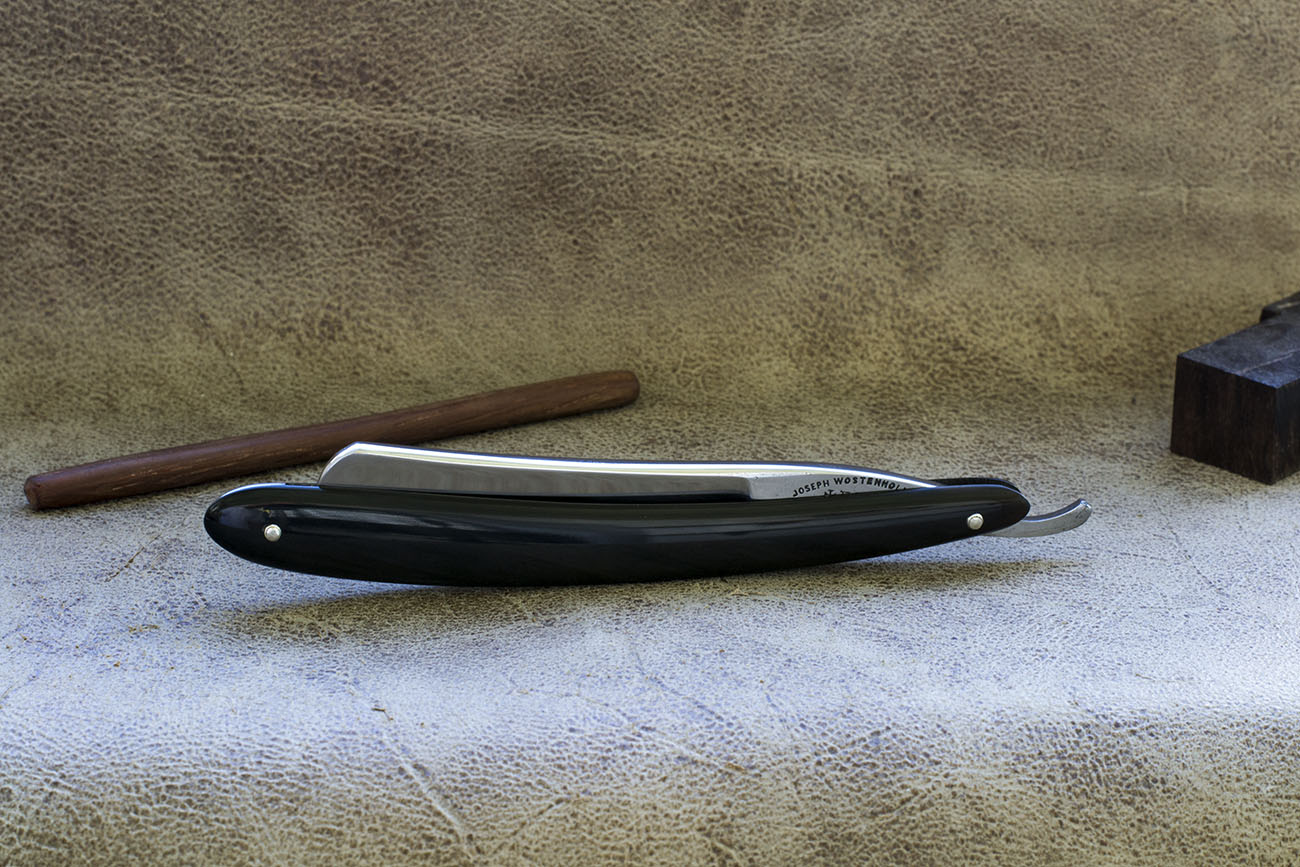 Бритва от Джозефа Востенхольма торговой марки Ebro. Произведена в середине 19 века в г. Шеффилд, Англия. Как большинство английских битв этого периода сделана из замечательной тигельной английской углеродки, которая легко точится и долго сохраняет свою остроту, давая мягкое комфортное бритье. Бритва получила новую рукоять из рога буйвола, сохранены родные шайбы. Имеет прекрасную геометрию и очень удобную форму эрля, подойдет как для бритья, так и для окантовки. Бритва заточена и готова к бритью. Продано Joseph Show