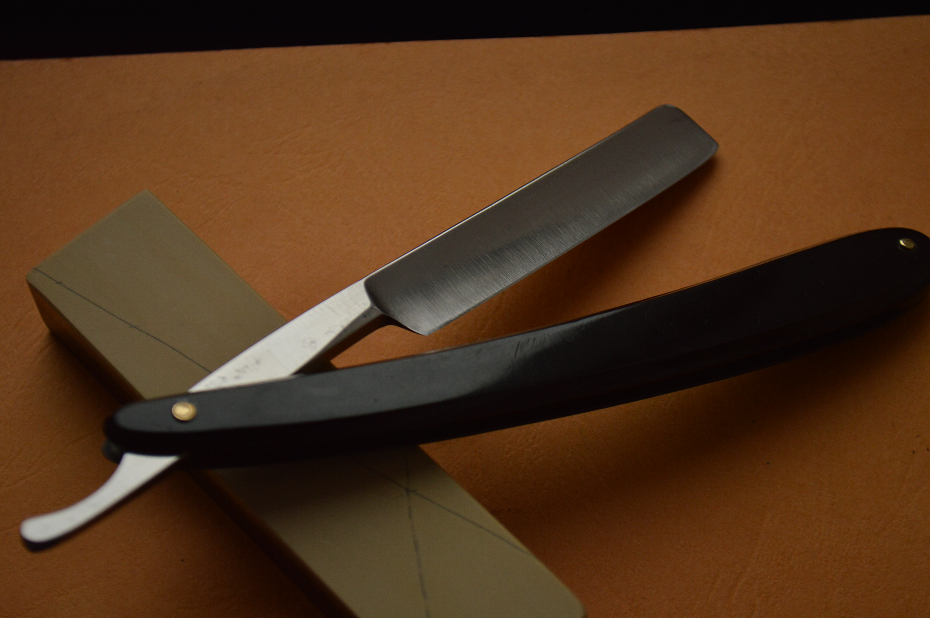 Spoiler Show Бритва в хорошем состоянии как для ее возраста. Бритва разбиралась, чистилась, менян осевой пин. Размер 4/8, выборка на четверть, ручка синтетика. Отличный экземпляр как в коллекцию, так и для постоянного пользования. Заточена, при этом не возможно не сказть про сталь... сталь не имеет ничего общего из сталями бритв советского производства послевоенного периода. Очень и очень класное бритье выдает этот образец. За деталями прошу обращаться в личные сообщение. Оплата по договоренности обсуждается в л/с (зачастую это перевод на карту Виза), отправка посредством государственной почты Украины и России. Резерв в л/с. Spoiler Show