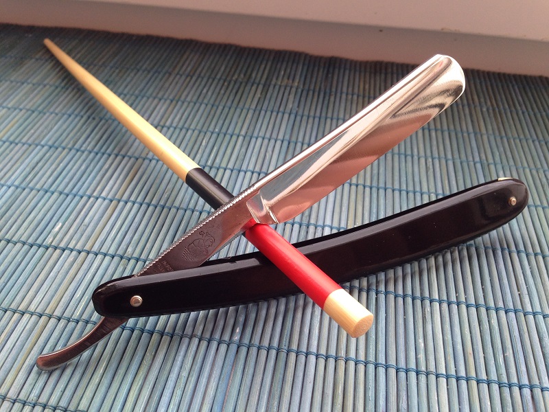 Франция , с родными комплектующими . Длинный клинок , порядка 15 см .Ширина полотна 4/8 . Следов использования , в прочем как и заточки нет . Заточена и готова к бритью