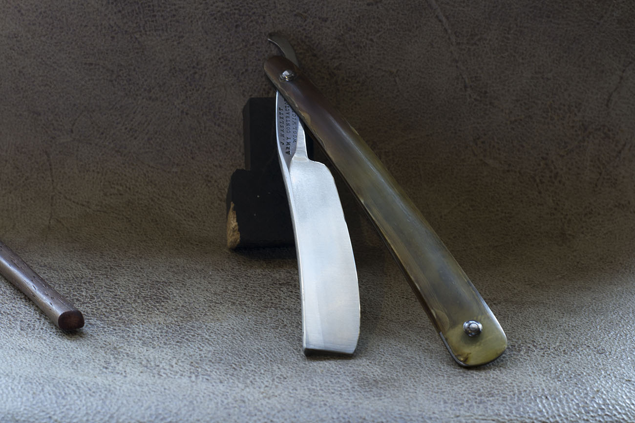 Опасная бритва от знаменитого шеффилдского производителя George Wostenholm & Sons марки IXL. Марка IXL принадлежала семье с середины 1830-х, а фабрика Washington Works с конца 50-х, судя по форме клинка и вогнутости бритвы в ¾ рискну предположить, что бритва была изготовлена в 60-х годах 19 века. Клинок имеет отличную геометрию, полотно плавно расширяется к носику и максимальная ширина достигает 22 мм. (7/8), спинка в самом широком месте имеет ширину в 6 мм, создавая оптимальный угол заточки на протяжении всей режущей кромки. Бритва получила новую рукоять из кости буйвола. Заточена и готова к бритью. Отличный выбор для коллекционеров. Продано Wostenholm Show