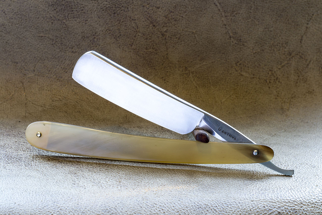 Бритва середины 19 века от фабриканта Bathol Fils. Бритва получила новую рукоять из светлого рога буйвола. Был сохранен родной клинышек из кости и латунные шайбы конусом, характерные для французского клина середины 19 века. Как и все французские бритвы того периода, бритва изготовлена и качественной углеродистой стали. Имеет прекрасную геометрию и является одним из лучших инструментов для бритья созданных человеком за все время. Бритва имеет ширину 23 мм (7/8+), массивный обух и довольно удобный, в удерживании, широкий эрль. Цифра 96 до 1867 года использовалась на бритвах Клемента Бернара, под маркой 76 VERITABLE BERNARD. В 1967 г. знак переходит в собственность Bathol Fils и больше никогда не используется, превратившись в 76 Bathol, 176 Bathol, 760 Bathol и тд. Возможно, эта история является ярким свидетельством победы одной французской фабрики над другой. Так же, следует заметить, что бритвы от Bathol Fils исчезающе редки, что делает их прекрасной находкой для коллекционера. К фотографиям прикрепил одно из поздних свидетельств о регистрации марки, закрепляющих 196 Bathol за фабрикантом Bathol Fils. Бритва заточена и готова к бритью. Продано 96 Bathol Show