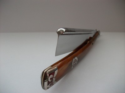 Интересный гринд (ложный фреймбек, но достаточно своеобразный). Углеродистая сталь, ширина полотна 20мм, длина режущей кромки примерно 74мм. Отличный вариант в коллекцию. Есть следы времени , но кромка чистая. Заточена и готова к бритью.