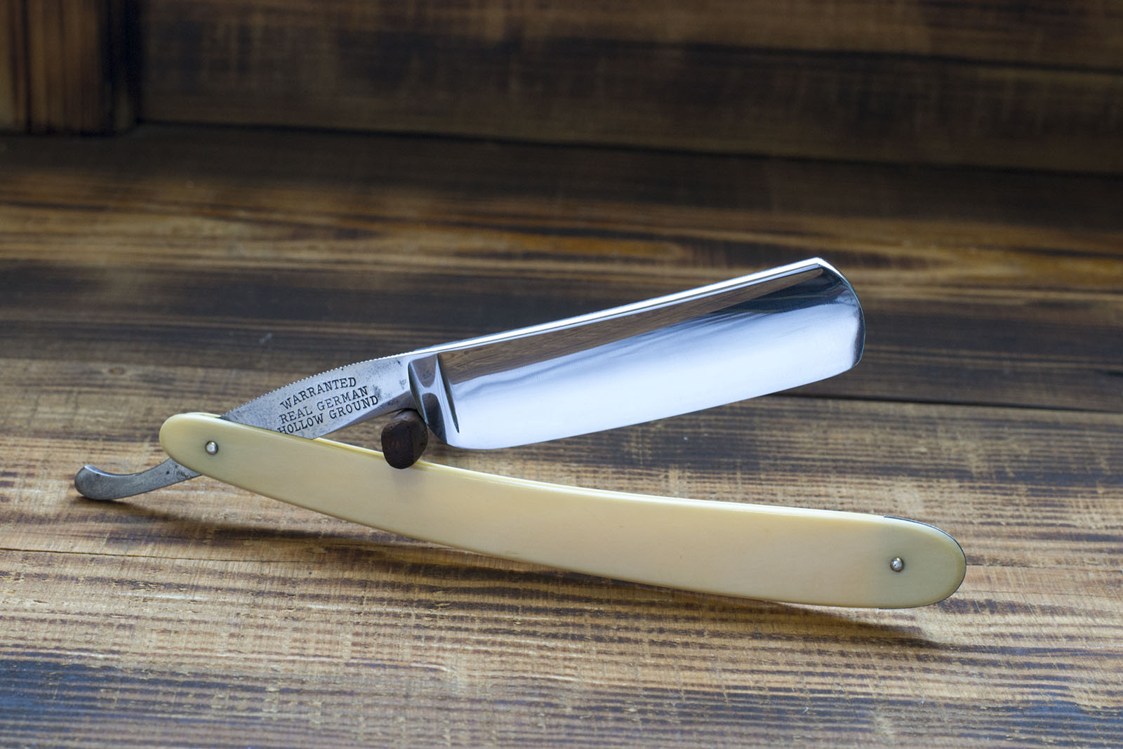 Германская бритва второй половины 20 века изготовленная из фирменной нержавеющей стали Friodur от компании Henckels. Об особенностях данной стали мало что известно, кроме того что запатентована в 1965, содержит неизвестное количество легирующих элементов - хрома и углерода и поддвергается фирменной криозакалке. По факту это дает режущие свойства сопоставимые с бритвами из углеродистой стали, кроме того обеспечивает высокую сопротивляемость коррозии, именно поэтому эти бритвы можно рекомендовать новичкам, людям ищущим командировочную бритву или просто всем кто не хочет следить за полотном. Данные бритвы хорошо хранятся в ванных комнатах и другх местах с повышенной влажностью. Рукоять бритвы изготовлена из целлулоида, родная по всей видимости была утрачена в давние времена. Полотно практически не точилось, никакого абразивного воздействия с моей стороны кроме легкой полировки и заточки. Бритва заточена и готова к бритью. Продано Friodur Show