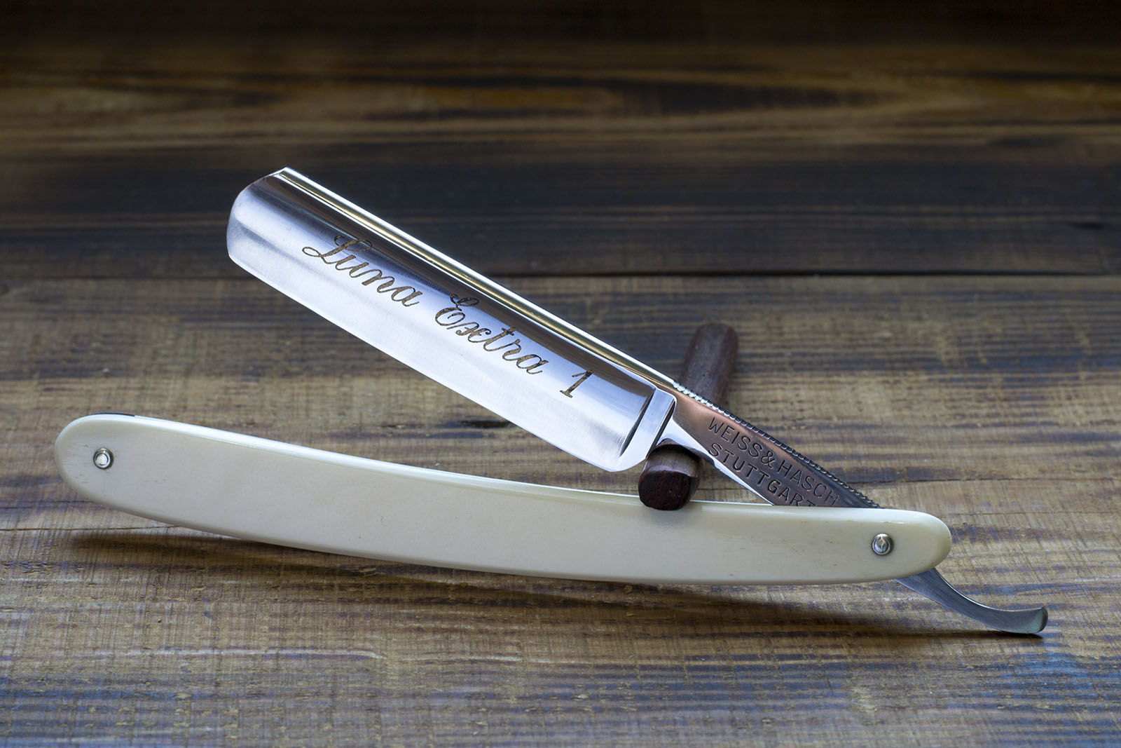 Последняя из имеющихся у меня в запасах непользованная Luna от Lunawerk. Solingen, владельцами которой был Abraham Feist и компания. Имя на эрле и на коробке бритвы - Weiss & Hasch очевидно является клеймом заказчика но подлинный производитель как раз A. Feist. Упаковочную бумагу, которая довольно неплохо сохранилась, переделывать не стали и на эрле нарисованной бритвы указано имя A. Feist. Рискну предположить что бритва произведена до 1914 года, позднее владельцами фабрики стали наследники Абрахама, встречал более поздние бритвы от Lunawerk без клейма A. Feist. Но это не более чем предположения, фабрика могла ставить клеймо основателя и после его смерти. Рукоять бритвы изготовлена из кости, выполнена очень качественно и прекрасно сохранилась, полотно имеет полную вогнутость, идеальная геометрия и качественная углеродистая сталь являются залогом качественного бритья а выполненное с позолотой травление будет неизменно радовать глаз на протяжении многих лет. Ширина полотна 18мм. Бритва заточена и готова к бритью. Анотация на этикетке гласит - "Луна - изготовлена из высококачественной тигельной (литой) стали непревзойденного качества. Остерегайтесь имитаций и требуйте бритвы марки Луна. Продано Luna Show