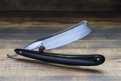 Старый клин, с прекрасной геометрией, изготовленный из качественной углеродистой стали во Франции. К сожалению период производства определить затруднительно, французы долгое время были приверженцами классических форм и подобные полотна выпускались до начала 20 века, но по косвенным признакам - форме родной рукояти и состоянию рога рискну предположить что это 70-80 гг 19 века. Бритва имеет крайне удобный эрль с подпальцевой выемкой, массивный широкий обух, ширина полотна 18.4 мм, отлично подходит для повседневного бритья и окантовки. Фаска режущей кромки тонкая и равномерная, свидетельство правильной геометрии полотна. Форма полотна уравномерно улыбчивая, что так же считаю несомненным плюсом. Бритва имеет новую роговую рукоять, изготовленную в соответствии с оригинальной, заточена и готова к бритью. Продано Volpiliere Fils. Show