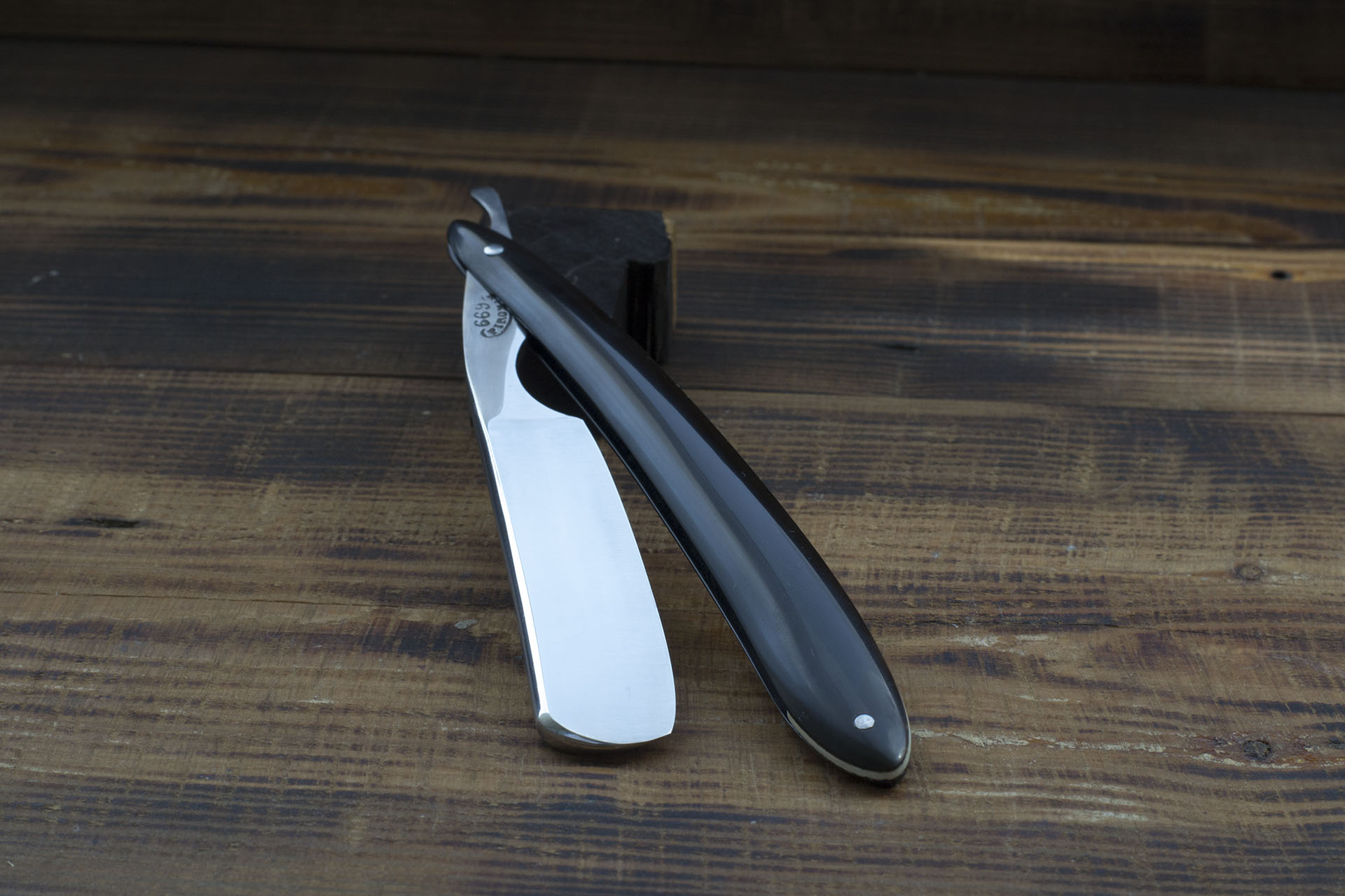 Бритва от наиболее почитаемого шведского производителя Carl Victor Heljestrand, ведущего свою историю с 1810 года, когда Alderman Olof Heljestrand основывает свою фабрику, на которой в дальнейшем и трудился юный Carl Victor. Впоследствии фабрика заработала свою репутацию, выходящую далеко за пределы Швеции, безупречным качеством продукции,а так же изысканностью форм и материалов. Но на мой взгляд основополагающими факорами в определении качества и приобретении репутации данной фирмы являлись именно потребительские свойства их товаров. Я знаком лишь с бритвами, но с уверенностью могу сказать, что сталь и ее термообработка закладывают великолепные режущие свойства в данные изделия, кроме того, я практически не встречал бритв от Карла Виктора, страдающих дефектами геометрии. Данная бритва имеет ширину в 17 мм, модель номер 31, сделанная для Kindal, France. Снабжена рукоятью из слоновой кости, текстура которой завораживает. Сталь и геометрия выше всяческих похвал, вогнутость полная. Бритва заточена и готова к бритью. Продано 31 Show