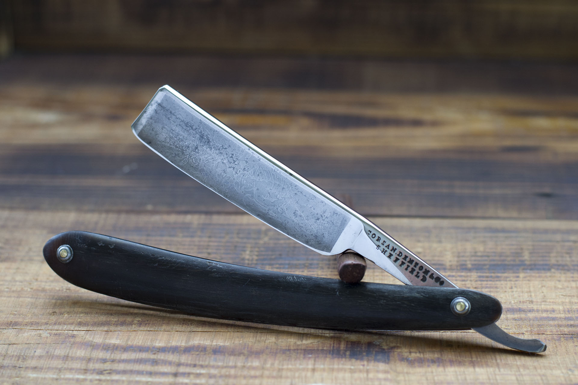Опасная бритва от знаменитого английского бренда Wade&Butcher. Бритва имеет тип вогнутости, принятый называть ложным фреймбэком (Faux frameback), ширина полотна 22 мм. (7/8), новая роговая рукоять, на полотне травление Celebrated Concave Razor, очевидно что во времена изготовления этой бритвы понятия ложный фреймбэк не существовало или оно не применялось в отношении подобных бритв, поэтому данная форма полотна именовалась просто Concave razor или Hollow ground razor, как и остальные формы полотен с вогнутостью, полученные поперечным гриндом. Бритва изготовлена в 60-70-х годах 19 века из литой углеродистой стали, полотно имеет прекрасную геометрию, фаска режущей кромки тонкая и равномерная. Подобные бритвы обеспечивают мягкое бритье, сравнимое с клинами тех лет, так же они практически бесшумны. Бритва заточена и готова к бритью. продано concave Show