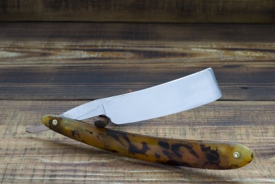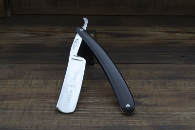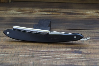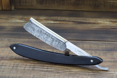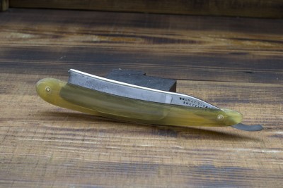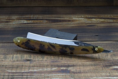 Французская опасная бритва от фирмы Thiers-Issard, изготовленная на одном из известнейших предприятий города Тьера, торговая марка 69 MEDAILLE ARGI. Предприятие было основано Пьером Тьером в середине 80-х годов 19 века, примечательно что Пьер был учеником мастера - изготовителя бритв а так же сам в последствии получил подобное звание в Гильдии. Нужно отметить что изготовление бритв и режущего инструмента было семейным бизнесом и вероятно Пьер, основав свою марку, в первую очередь преследовал цель межевания и отделения от семейного производства. Данный клин изготовлен в конце 19 века, имеет ширину полотна 20 мм и родную роговую рукоять. Клинышек бритвы изготовлен из целлулоида, что показывает постепенный переход предприятия от традиционных материалов к более современным, в остальном же - технология производства данного клина полностью аутентична и старомодна. Геометрия - традиционный для Франции клин с легкой улыбкой и небольшим парикхерским вырезом, форма рукояти так же полностью традиционна, геометрия полотна на высшем уровне - фаска режущей кромки тонкая и равномерная. Мягкая кованная углеродистая сталь, произведенная во Франции традиционным способом, идеальна для бритв с вогнутостью клин. Бритва заточена и готова к бритью, отличный коллекционный экземпляр - ранняя бритва знаменитой фабрики, продолжающей работать и по сей день. Продано 69 Show