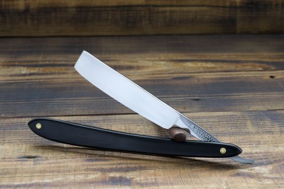 Узкий английский клин без клейма производителя. На эрле стоит метка Fine India Steel, что в целом дает представление о стали как о качественной литой углеродке, произведенной в 30-40-х годах 19 века. Бритва имеет тонкую и равномерную режущую кромку, что свидетельствует о хорошей гометрии полотна. Рукоять изготовлена из дерева и является интересным образчиком народного творчества в области ремонта и модификации бритв. Порода дерева напоминает падук или что то похожее, из уважения к неизвестному мастеру 19 века, рукоять немного освежил, пропитал даниш ойлом и поставил обратно. Ширина полотна 15.5 мм. Бритва идеальна для окантовки, но при определенной практике может отлично справляться с любой щетиной. Режущие характеристики узких клинов ничем не хуже аналогочного параметра широких, длина режущей кромки идентична и при правильной постановке угла и техники бритья, узкий клин легко станет прекрасным ежедневным решением. Бритва заточена и готова к бритью. Продано Fine India Show