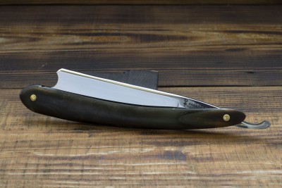 Довольно старая бритва от Тьер Иссар с вогнутостью полотна порядка 1/2. Вероятно бритва произведена в конце 19 - начале 20 века. В изготовлении оправы использованы исключительно натуральные материала - рог и кость для клинышка, некоторые более проздние бритвы так же комплектовались роговой оправой но уже с белым целлулоидным клинышком вместо кости. Бритва имеет ширину 21 мм (13/16), а полотне есть травление Le Supreme. Бритву отполировал пастой в умеренном режиме, больше с полотном было решени ничего не делать, так как состояние крайне достойное. Разобрал лишь с целью придать полотну ровное закрывание с учетом деформации рога, так же поставил новые современные шайбы, поскольку до этого бритва была заклепана без них. Заточка показала хорошую геометрию, фаска режущей кромки тонкая и равномерная, так же порадовала в меру твердая сталь. Отличный коллекционный экземпляр для ценителей Thiers Issard и старой Франции в целом. Качество намного выше современных бритв этой фабрики, мои рекомендации. Продано 69 Show