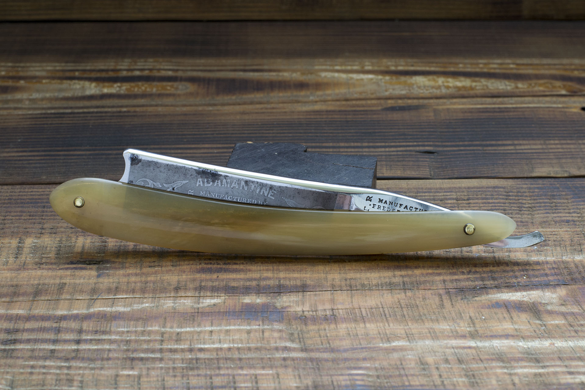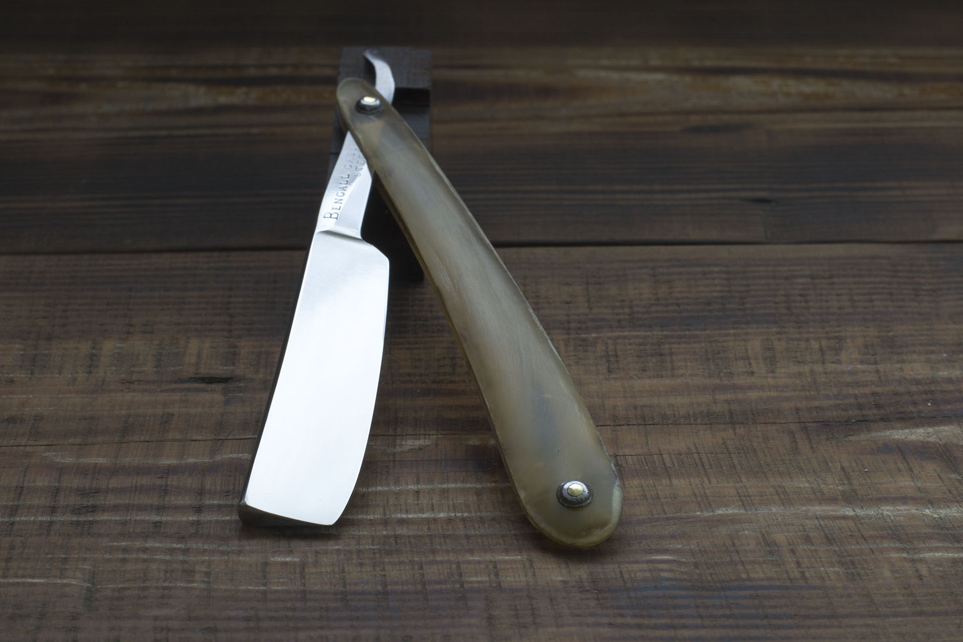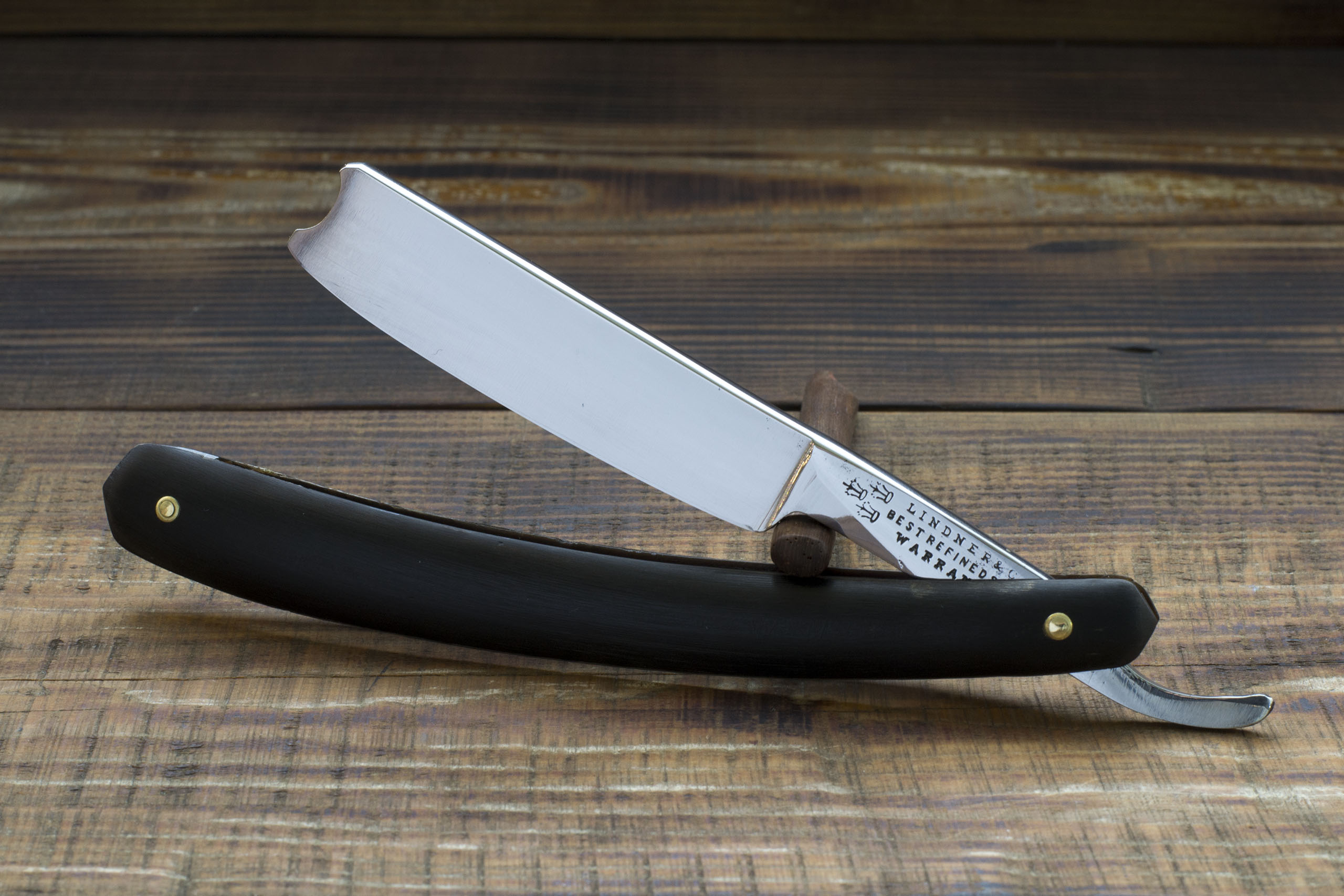 Судя по мнению общественности бритвы Lindner стоит отнести к английскому производству. Бритва имеет роговую рукоять, ширина полотна 19 мм. (6/8), судя по форме и надписи - Refined steel (Рафинированная сталь), бритву можно отнести к 30-40- м годам 19 века. Стоит отметить агрессивную форму клинка и наличие выраженного парикмахерского выреза, бритва показалась мне очень удобной для удержания из за широкого эрля и длинного хвостовика. Полотно средней ширины позволяет с комфортом использовать бритву для повседневного бритья или при окантовке. Геметрия полотна на отлично - фаска режущей комки тонкая и равномерная.. Бритва заточена и готова к бритью. Цена 9800 рублей Spoiler Show