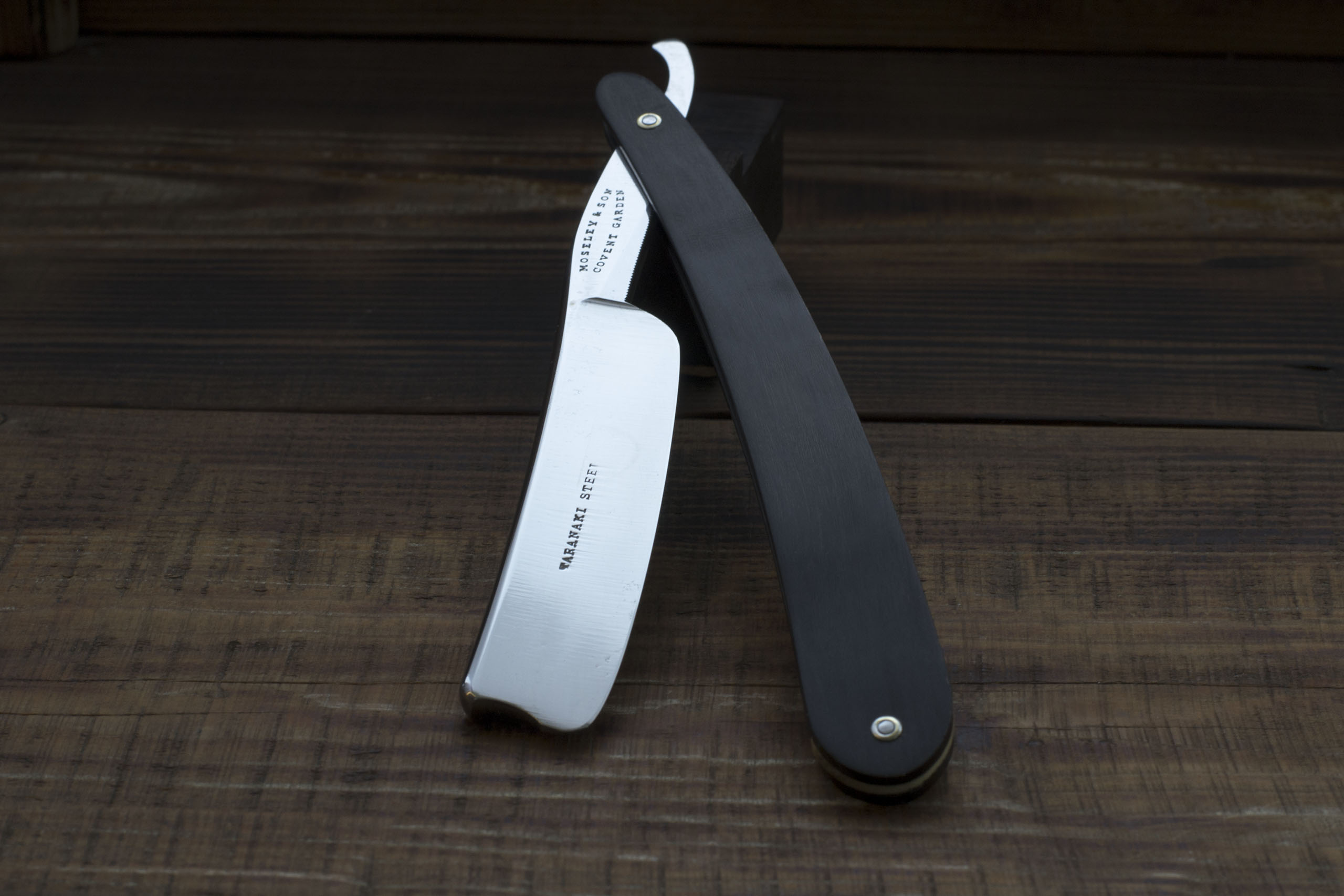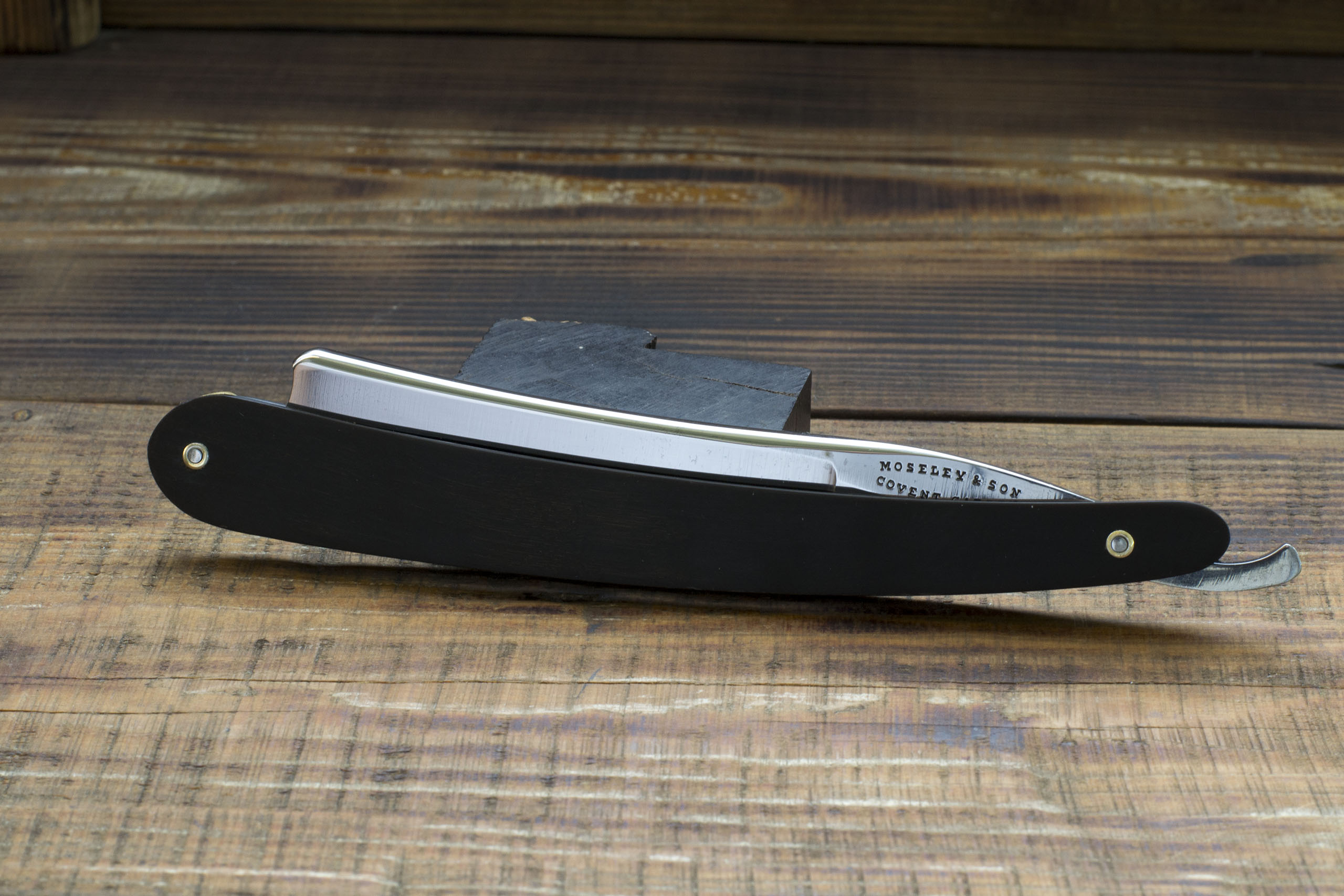 Старый клин от английского производителя Moseley & Son. Мозли довольно примечательная семья из Лондона, с богатой историей, первые упоминания о их магазине на Нью Стрит ведут к 1730 году. Не вижу смысла пытаться подробно осветить историю Мозли, на londonstreetviews.wordpress. есть замечательная статья, с удовольствием поделюсь ссылкой. Очень примечательный факт - Мозли производили инструмент и бритвы, которыми торговали, а не просто являлись продавцами. Хотя следует отметить, что часть товара их магазина, все же могла производиться на стороне. Данный клин имеет ширину 20 мм. (6/8+) и снабжен роговой рукоятью традиционного французского типа. Бурный восторг вызывает клеймо в центре клинка - Taranaki Steel, после долгих лет работы с опасными бритвами, я решил что меня трудно удивить, но бритва сделанная в 19 веке из черного песка Таранаки с берегов Новой Зеландии просто потрясла. Думаю что какая то часть руды добывалась уже в те годы и Moseley решил попробовать ее в бритвах. При заточке данная сталь ведет себя великолепно, кроме того само исполнение клинка на очень высоком уровне, фаска режущей кромки тонкая и равномерная, я решил оставить немного следов окисления, сведя весь процесс реставрации к полировке полотна и заточке. Бритва является действительно очень редким и уникальным коллекционным предметом, но помимо этого, это и отличный инструмент для борьбы с щетиной разной длины и любой жесткости. Заточена и готова к бритью. Продано. Мозли Show