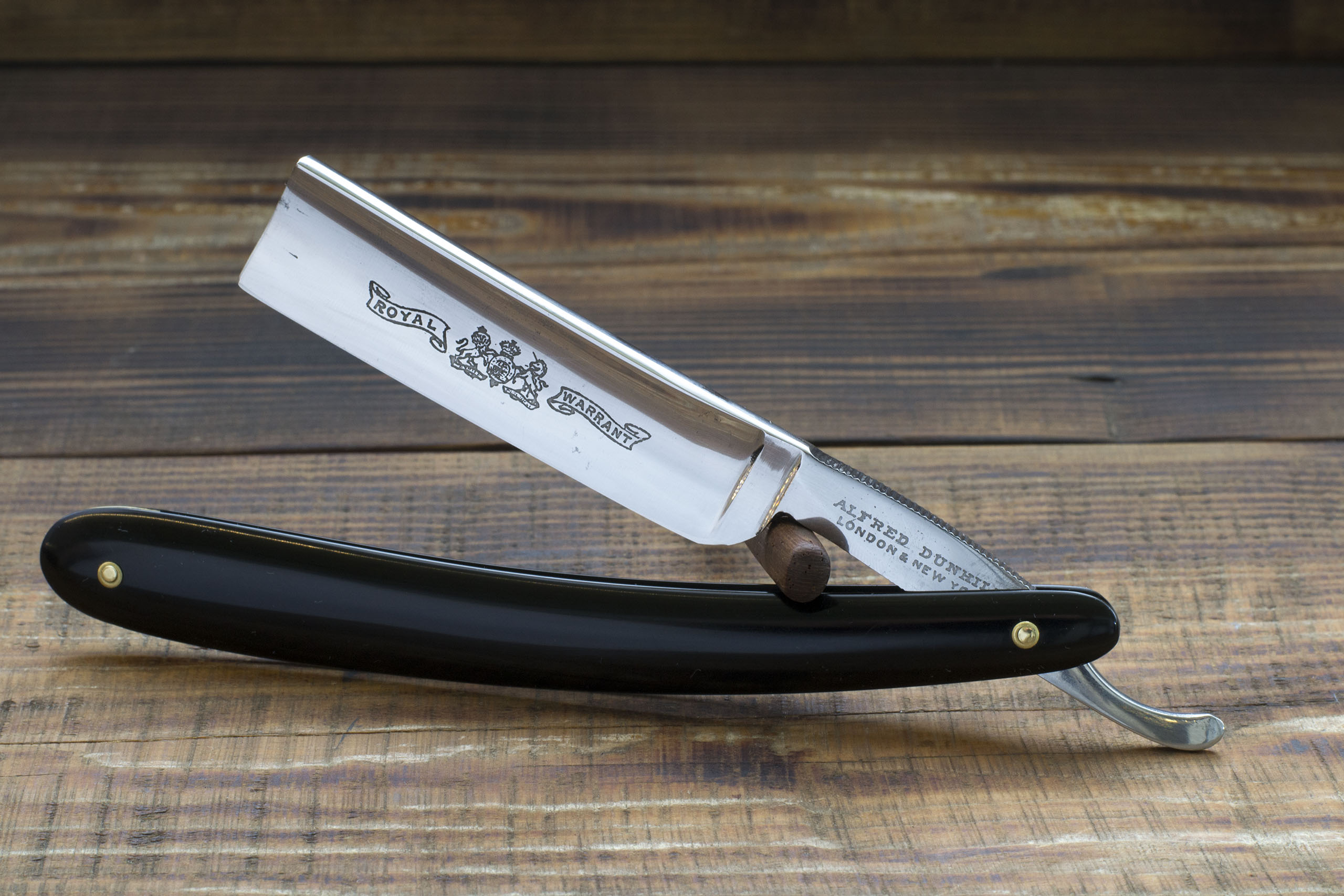 Опасная бритва от компании Wilkinson, созданная специально для компании Альфреда Данхилла, оказывается и такие были о_О. Я часто встречал наборы лезвий и Г- станки Вилкинсон для магазина Данхилла, но опасную бритву вижу впервые. Ширина полотна 20 мм, бритва имеет полную вогнутость, снабжена эбонитовой рукоятью, состояние полотна на 4+, имеет некоторые следы окисления, точилась судя по всему мало и имеет оригинальную ширину. Двустороняя насечка эрля очень удобна, спинка массивна, в целом крайне приятная бритва. В центре полотна травление - герб Англии со львом и единорогом и надпись - Royal Warrant. Красивый и редкий экземпляр годный для повседневного использования, способный так же стать украшением коллекции. Бритва заточена и готова к бритью. Продано Dunhill Show [/b]