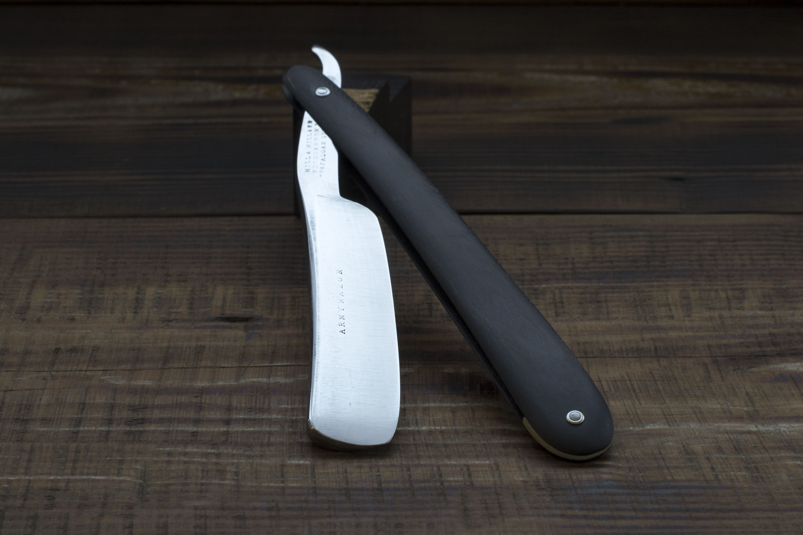 Hill & Millard представляла собой предприятие, производившее широкий спектр мебели, дорожные кейсы, сумки и прочие предметы повседневного быта, ориентированные на сбыт военным. Магазиин был расположен по адресу 7 Duncannon St. на углу Трафальгарской Площади в Лондоне. У фирмы довольно интересная история, ознакомиться с которой можно здесь http://www.campaignfurniture.com/antiqu ... rd-kit-bag Как и большинство вещей в магазине Милларда, бритва так же была ориентирована на нужды кампании, поэтому имеет довольно грубую форму и клеймо Army Razor по центру полотна. Ширина 20.4 мм., роговая рукоять, грубый заводской сатин. Бритва была в очень приличном состоянии, я ограничился лишь полировкой и заточкой полотна, оставив некоторые следы окисления. Геометрия на очень хорошем уровне - фаска режущей кромки тонкая и равномерная. Так как Хилл и Миллард не имели отношение к производству режущего инструмента, думаючто бритвы заказывались на одной из шеффилдских фабрик того времени. Очень сложно сказать где именно, но исполнение бритвы на высоском уровне, так же как и качество стали. Бритва заточена и готова к бритью. Отличный вариант армейской антикварной бритвы. Цена 13500 рублей Hill Show