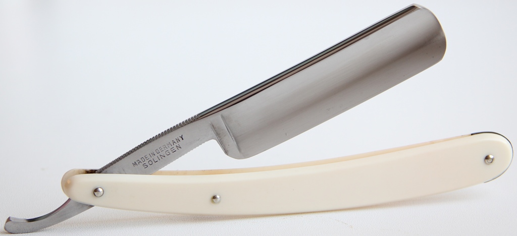HENCKELS ZWILLINGSWERK-SOLINGEN.Модель 472 Ширина поотна-20 мм Толщина обушка-5.5 мм Полная вогнутость. Середина 20-го века Бритва в хорошем состоянии. Разобрал, ремного почистил полотно и снова собрал,заменив пины и добавив внутренние шайбы. Бритва парикмахерская, так что немного уточен носик,но еле заметно и не повлияет на дальнейшее использование.Плашки на оправе немного деформировались от времени, но клинок закрывается, ничего не цепляя.Поэтому ручку не стал менять, за ненадобностью. Кромочка равномерна по всей длине.В общем и целом бритва неплохая, послужит еще много лет и совершенно недорогая. Не пропустите! Цена-3900 р с доставкойПРОДАН