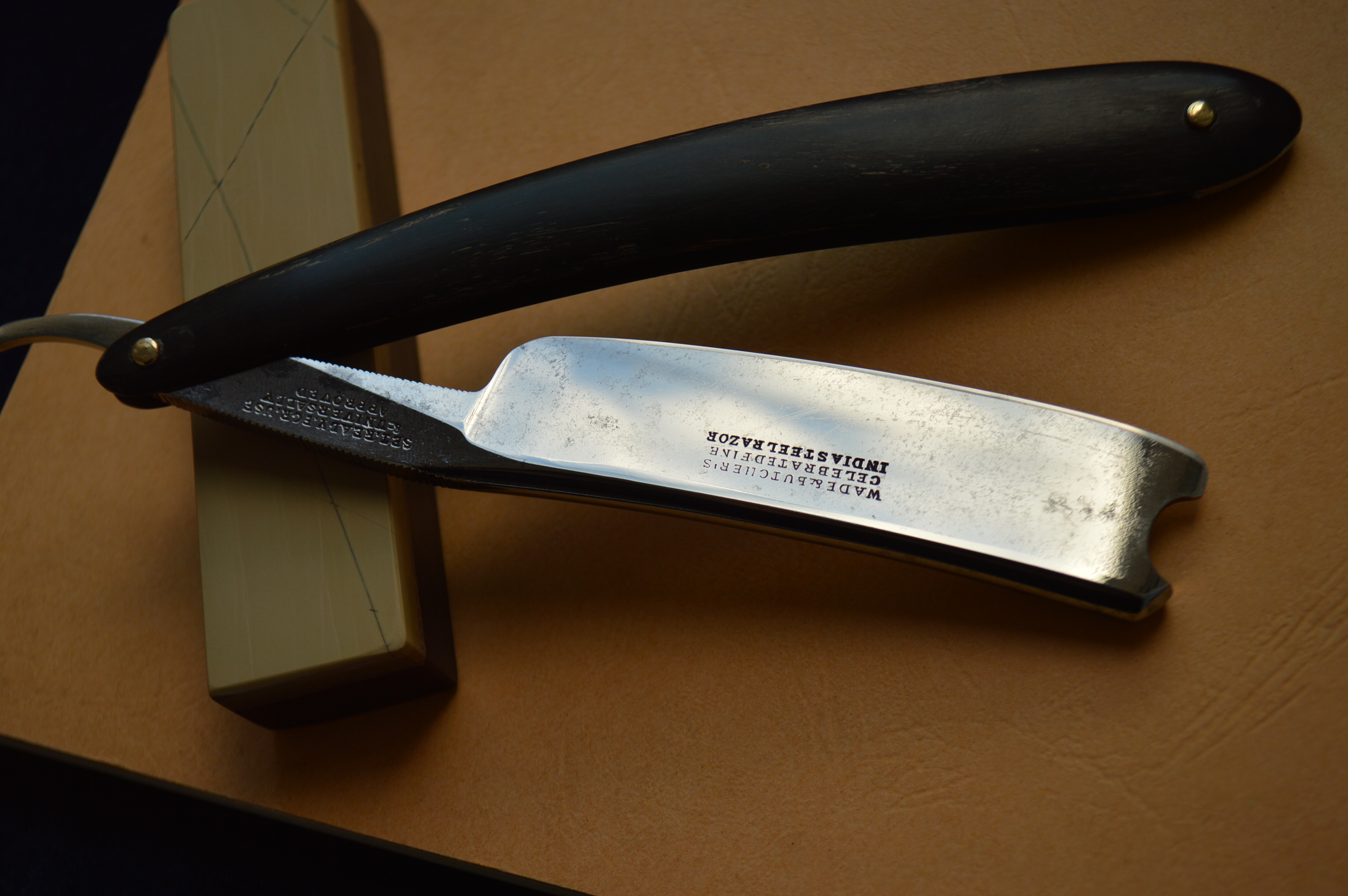 Профессионально восстановленная бритва в строении клин. Ширина полотна – 6/8, ручка рог в замечательном сохране. Сама сталь в лучших традициях французских бритв: вязкая, мелко-зернистая, бритье превосходно мягкое и чистое. То, как бреет эта бритва можно рассказывать часами, но главное, что вам нужно знать это то, что мягче бритвы вы не пробовали это точно. Отдельного упоминания заслуживает форма бритвы и исполнение спинки, эрля и хвостика. Насечки на эрле с двух сторон, которые позволяют очень удобно удерживать бритву, верхняя насечка просто громадная, редчайший вариант исполнения, при этом сам эрль удобен тем, что идет от нижней насечки к верхней на утолщение...очень тонкий ход от производителя, добавляет удобства в удержании, очень удобно в бритье при проходе сверху-вниз, а так же отдельного внимания заслуживает форма полотна, которое имеет сильно выраженную улыбку, что лучшим образом скажется на бритье. Спинка имеет ровную площадку, если бритву поставить на спинку, то она на ней так и будет стоять, от спинки уходят спуски к полотну, образовывая в сечении трапецию. Пользуйтесь возможностью, такие достойные и незаурядные образцы старой Франции практически не встречаются. За деталями прошу обращаться в личные сообщение. Оплата по договоренности обсуждается в л/с (зачастую это перевод на карту Виза по курсу на день покупки), отправка посредством государственной почты Украины и России. Резерв в л/с. Цена 600 дол (доставка включена в стоимость) Spoiler Show