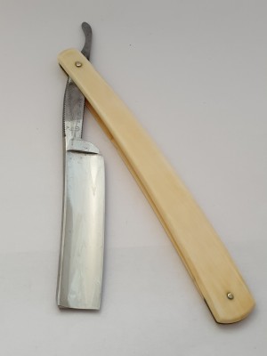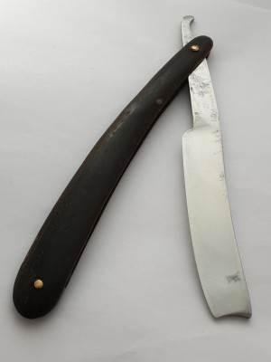 Продаётся от S&T46. Достойный представитель США из эпохи расцвета бритводелания - Electric Cutlery, NY. Фирма существовала с 1873 по 1920 год. Если судить по маркировке на эрле без указания страны-изготовителя, данный экземпляр вероятно произведен до 1891 года. Ширина клинка 18мм. Ручка из кости, трещина на одной плашке проклеена. На клинке заводская оригинальная полировка без наждачинга. Бритва не разбиралась, сделана только заточка.