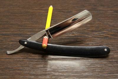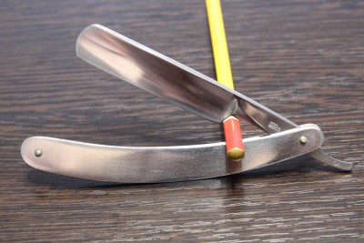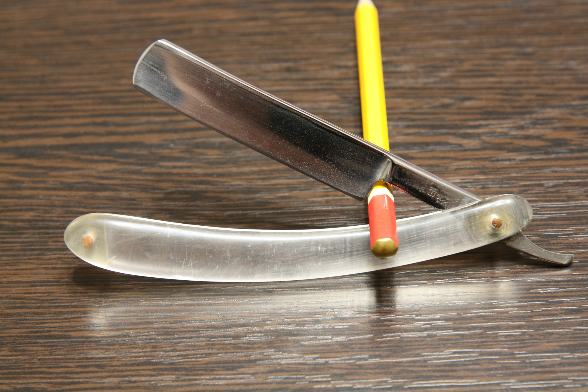 Опасная бритва J.A. Henckels 142, сделана в г. Золинген (Германия), ширина полотна 17 мм, твердая углеродистая сталь, профиль полуклин, барберский нос, все родное. Имеется трещина от эрля к обушку, но на бритье она не влияет. Бритва точно довоенная, более точно сказать не могу. Подготовлена мной к бритью (бреет чисто и хорошо держит кромку). Один из старейших и самых почитаемых брендов Золингена. Цена - руб.