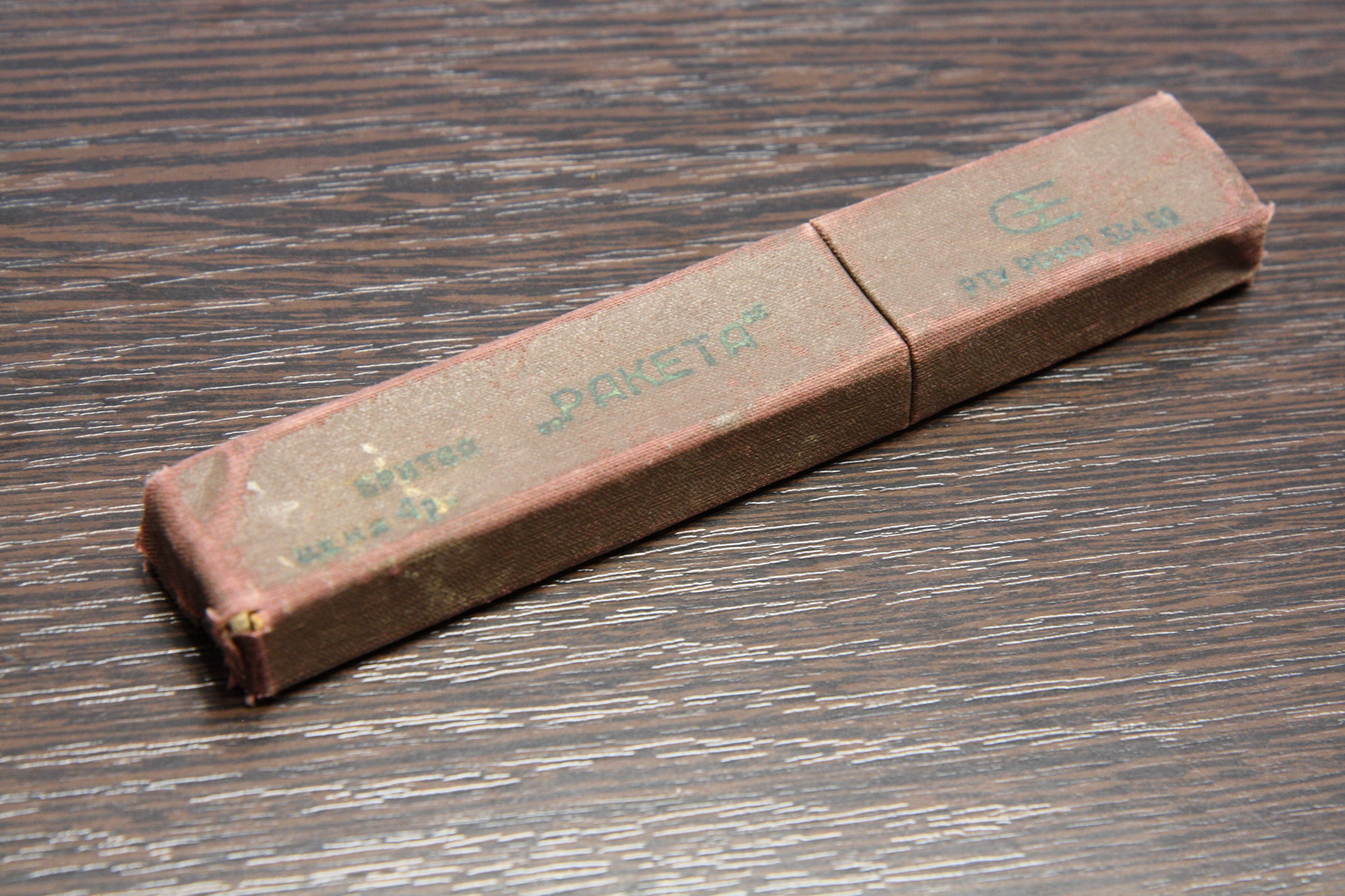 Опасная бритва Ракета, завод СТИЗ, 1965 год. Ширина полотна 15 мм, все родное, футляр тоже. Почистил вручную с сохранением "Ракеты" и подготовил к бритью. Ракеты считались качественными бритвами и были довольно дороги (4 рубля). Сталь звонкая, твердости чуть выше средней, чем то немцев напоминает. Цена - руб.