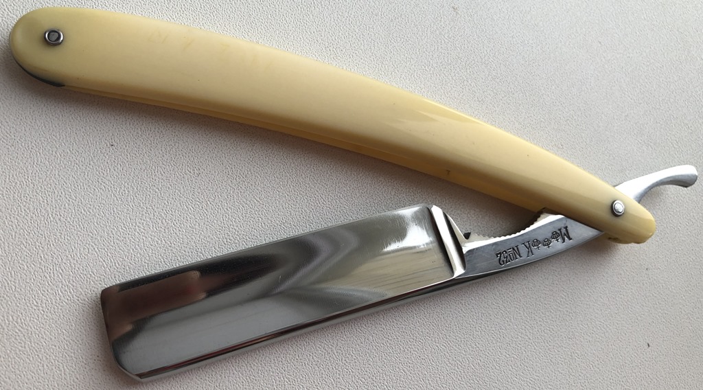 Как по мне, так очень красивая и практичная бритва. Тяжёлая,и удобная для пользования. Разобрал, немного освежил металл и снова собрал, поставив родные пины.Немного патины оставил на лицевой стороне клинка, чтобы не только оставить гравировку, но и сохранить оригинальный "налет старины"Идеальная геометрия полотна, сталь чистая, без дефектов.Бритва заточена и готова к бритью.Подойдет любому товарищу, интересующемуся бритьё клинковой бритвы:как новичку, так и опытному пользователю.