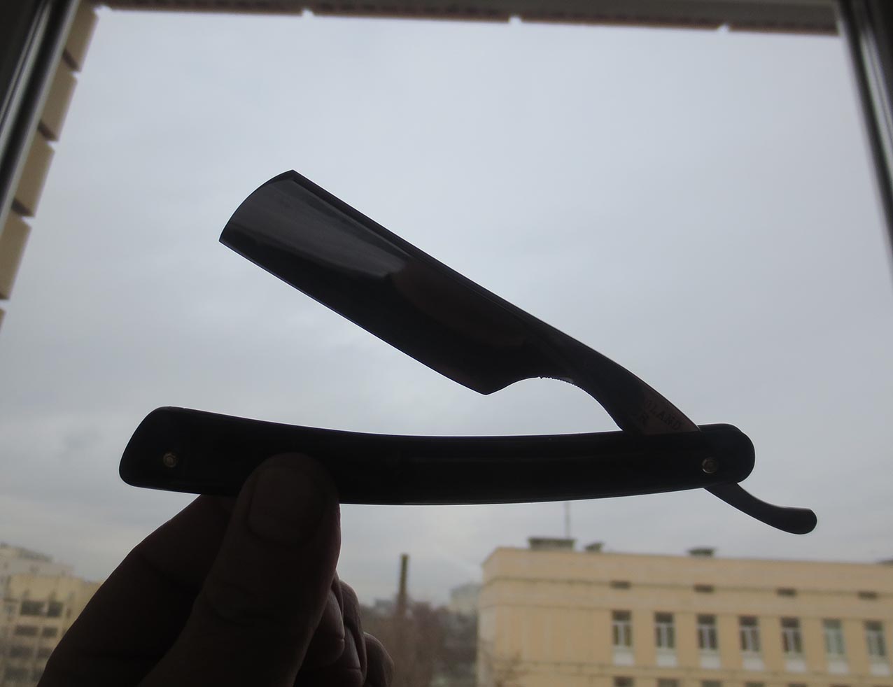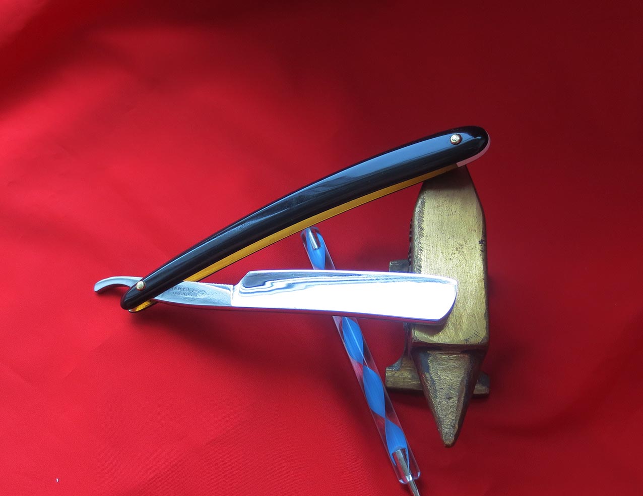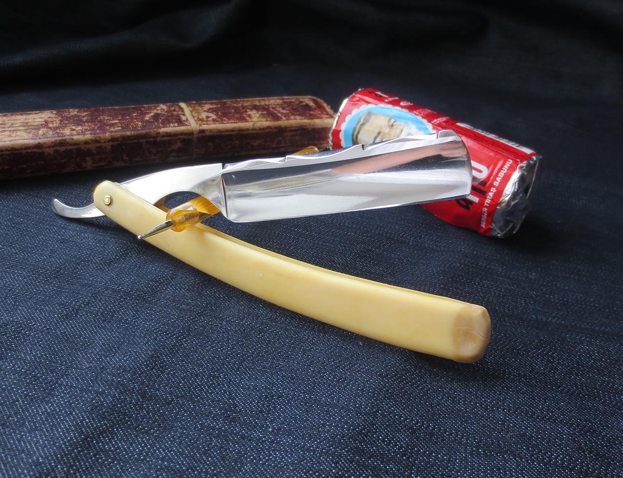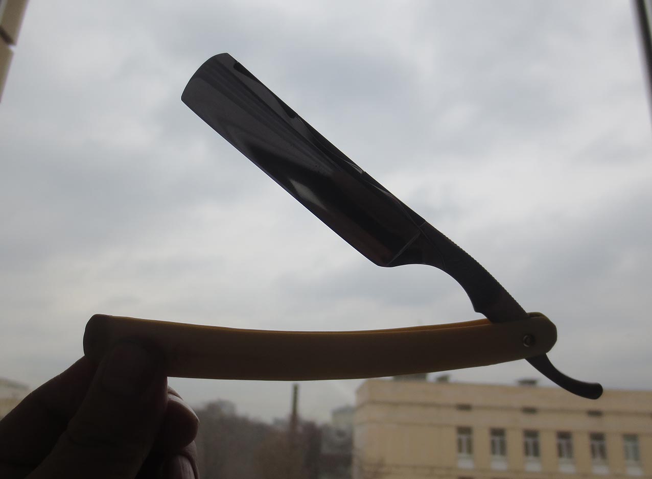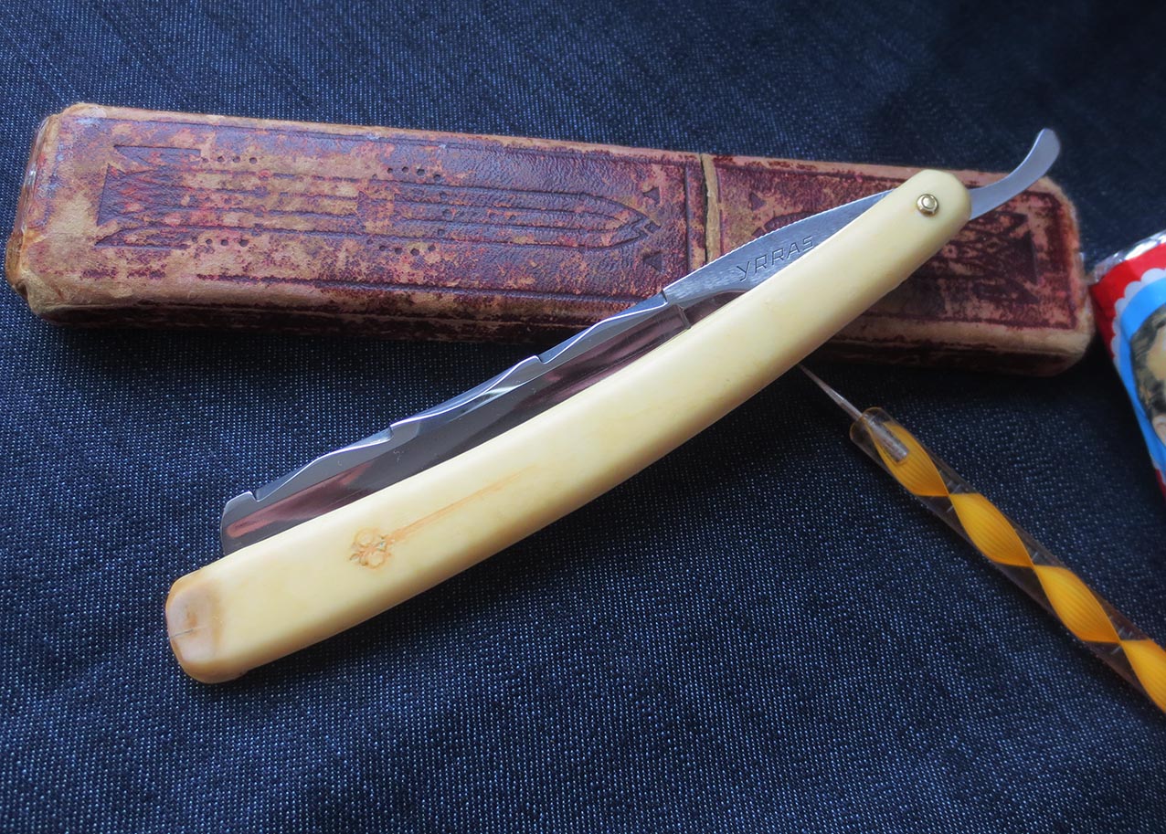 Французская опасная бритва YRRAS France. Производитель A. SARRY, ориентировочно 40-50е года. Углеродистая сталь, ширина клинка - 5/8 дюйма, родная однопиновая оправа с клеймом какого-то холодного оружия типа эспадрона, заклёпка - латунь. Бритва в отличном состоянии, заточена на японских водных камнях, направлена, продезинфицирована, полностью готова к работе и до покупки использоваться не будет. Купил и брейся! Также всегда в наличии ремни для правки опасных бритв из натуральной кожи (2000р) и при покупке набора почта по России за мой счёт. Начинающим подскажу и покажу по использованию и уходу за инструментом. Цена - 6200 рублей. Бесит, когда приходится пользоваться бритвой моложе себя...