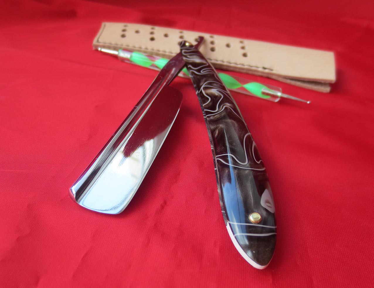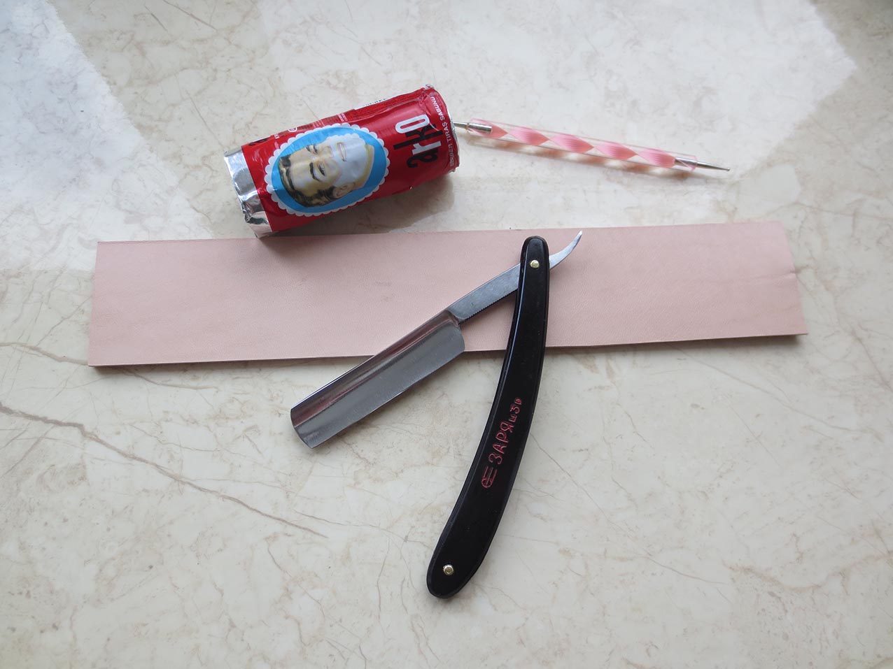 Произведена в 1954 году, углеродистая сталь, ширина клинка - 5/8 дюйма, изготовлена и установлена новая оправа из американского ударопрочного пластика, заклёпки - латунь. Инструмент заточен на японских водных камнях и полностью готов к работе. После теста был направлен, продезинфицирован и до покупки в работе гарантированно не будет! Рекомендую начинающим, как недорогой, но достойный вариант, для обучения и постоянного использования. Старый футляр видно почил в бозе и чтобы красавица не осталась без оного, приложу бонусом чехол для хранения из натуральной кожи ручной работы с перфорацией. Также всегда в наличии ремни для правки опасных бритв из кожи растительного дубления ручной работы, купившему бритву и ремень - доставка по РФ за мой счёт. Начинающим подскажу и покажу, как пользоваться и ухаживать за инструментом. Цена - 3500 рублей.
