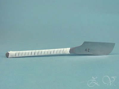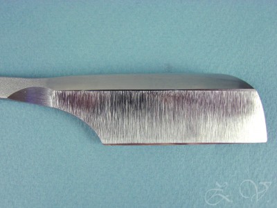 Продам асимметричную бритву камисори, сделанную мной по традиционной, японской технологии. Тело бритвы сделано из мягкой стали. На лезвие наварена кузнечной сваркой полоска высокоуглеродистой стали. Традиционно, японцы наваривают очень тонкий слой углеродистой стали на лезвие, поэтому при заточке бритвы принятое соотношение количества проходов по точильному камню сторон бритвы обычно составляет 10:1 или 7:1, чтобы режущая кромка не выходила на мягкую сталь. На 10 проходов по камню лицевой стороной «ура» приходится один проход (снятие заусенца) обратной стороной «омоте». Я навариваю на лезвие достаточно толстый слой углеродистой стали, поэтому затачивать можно как угодно. При заточке наклеиваю на грани изоленту или скотч. Если этого не делать мягкая сталь очень быстро стачивается точильным камнем. Бритва заточена и протестирована бритьём. Для защиты бритвы от коррозии я рекомендую смазывать голову бритвы чистым минеральным маслом. На ручке ПХВ намотка. При заточке использовалась изолента толщиной 0.2 мм. Все размеры указаны на фотографии. Цена – "Временно снято с продажи", плюс стоимость пересылки почтой России.