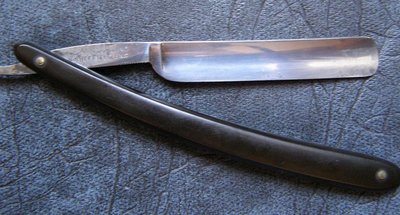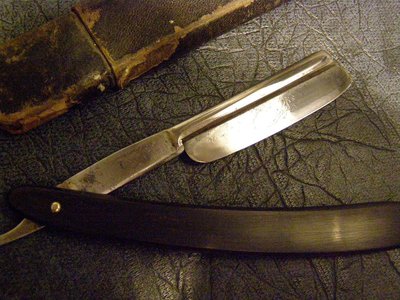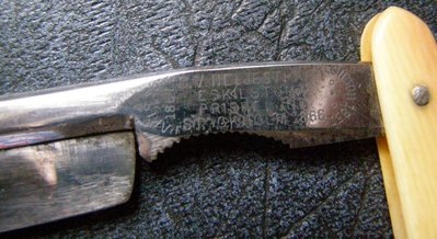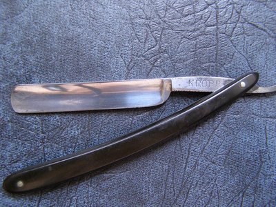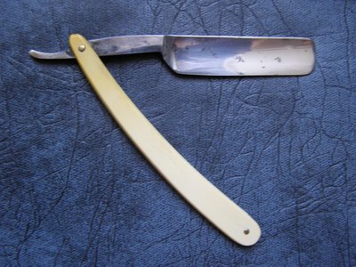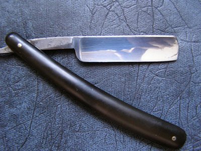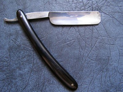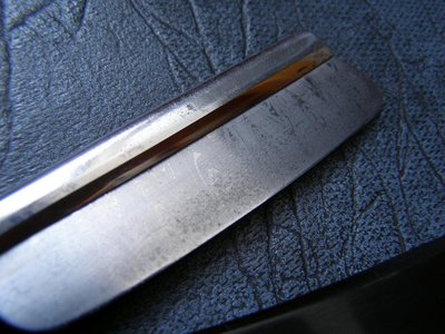 Длина - 140мм, лезвие - 75мм, ширина - 17мм. Оправа - рог, в довольно хорошем состоянии. Бритва 7 из 10.