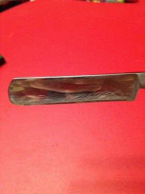1. По Спартаку. Бритва досталась мне почти в том же виде, что и на фото. За исключением того, что почистил я ее ГОИ. Снял "следы времени". И то, что вы видите - результат "умений" предыдущего хозяина. 80 грит или не 80, я без понятия, может он ее вообще напильником точил. Брал себе специально для тренировки, но пока нет в планах брать камень с таким зерном, чтоб сточить эту улыбку. А японца на ней убивать нет желания. 2. По востену. Трещина там именно на мыске, поэтому он с 2 сторон крупным планом. Снял как мог, она реально микроскопическая, на фото не видно. Но она есть, чего скрывать Если что-то интересует еще - спрашивайте. А учить меня не надо