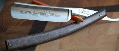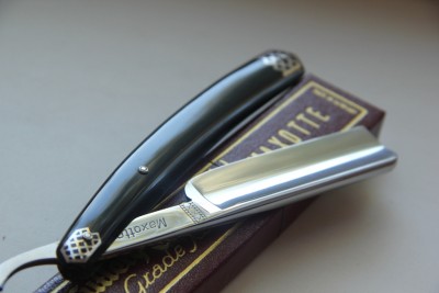 Ручку из натурального рога забрал от старого француза 19 века, почистил полотно, но без фанатизма. На лезвии остались несколько каверн( на фото видно), но это никоим образом не влияет на качество бритья. Сталь чистая, кромка чистая, без проблем. Идеальная геометрия.Бритва заточена впервые, проходит тест на рез волоса. Бритьё мягкое и комфортное.Удобный вариант для новичка и по цене-качеству.