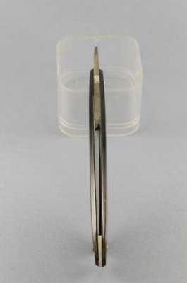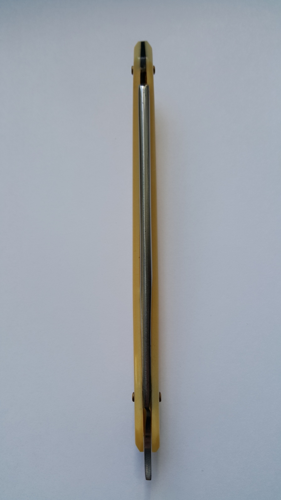 6. Boker винтажный, с узором на клинке и удобным изогнутым эрлем, крупная оправа удлиненной формы из бакелита. Ширина клинка 17мм. Отколот кончик одной плашки оправы. Небольшая обратная улыбка. Цена - ПРОДАНО на другом ресурсе.