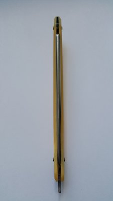 Клинок паркуется в ручку штатно, без перекосов и закусываний, на осевом пине сидит плотно, под собственным весом не вываливается. Видны установленные внутренние шайбы на осевом пине.